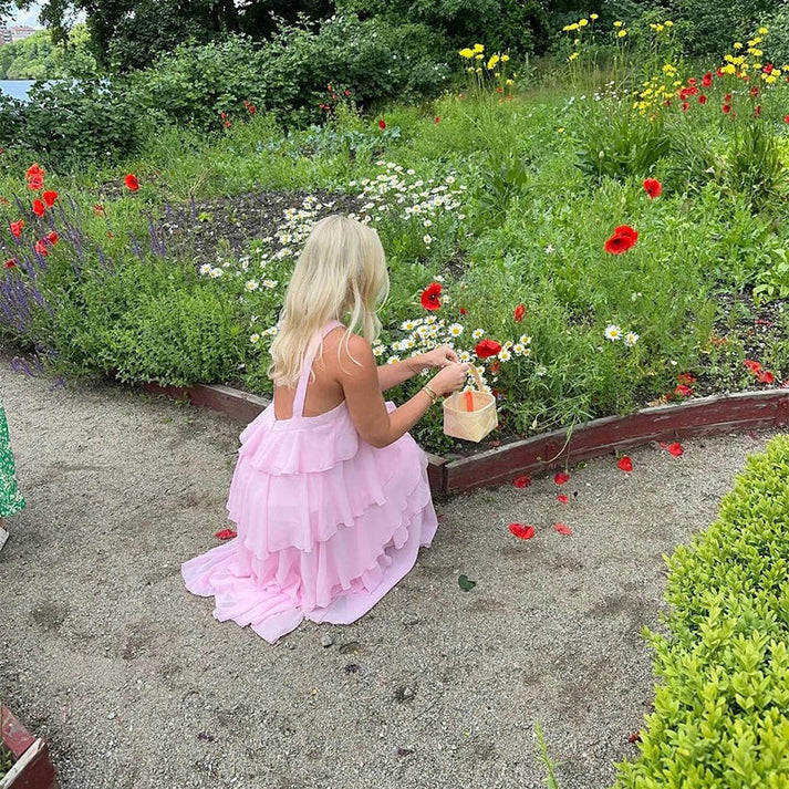 A line Halter Chiffon floor-length pink prom dresses SD1480