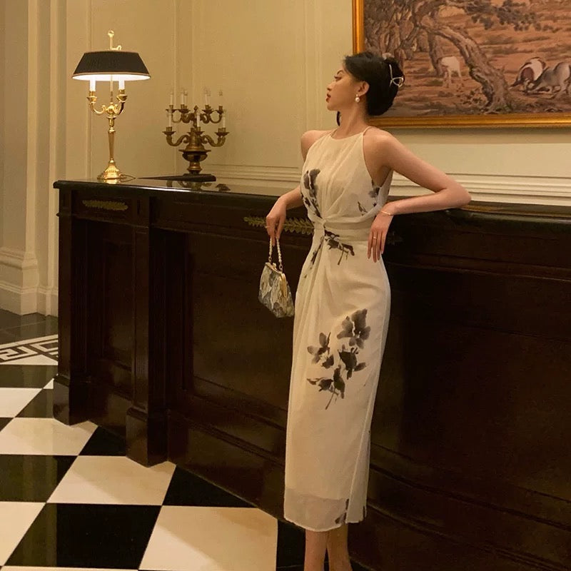 A Line Halter White Chiffon Date Night Dress Prom Dresses Birthday Outfit SD850