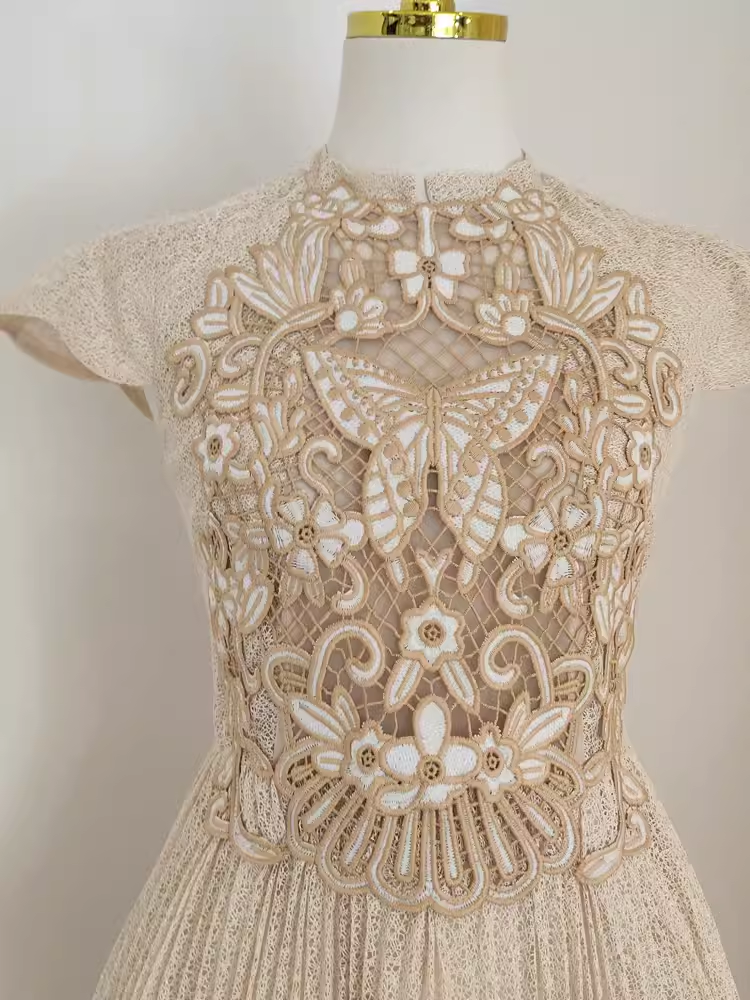 A line High Neckline Lace Vacation Dress Tulle Women Dresses SD137