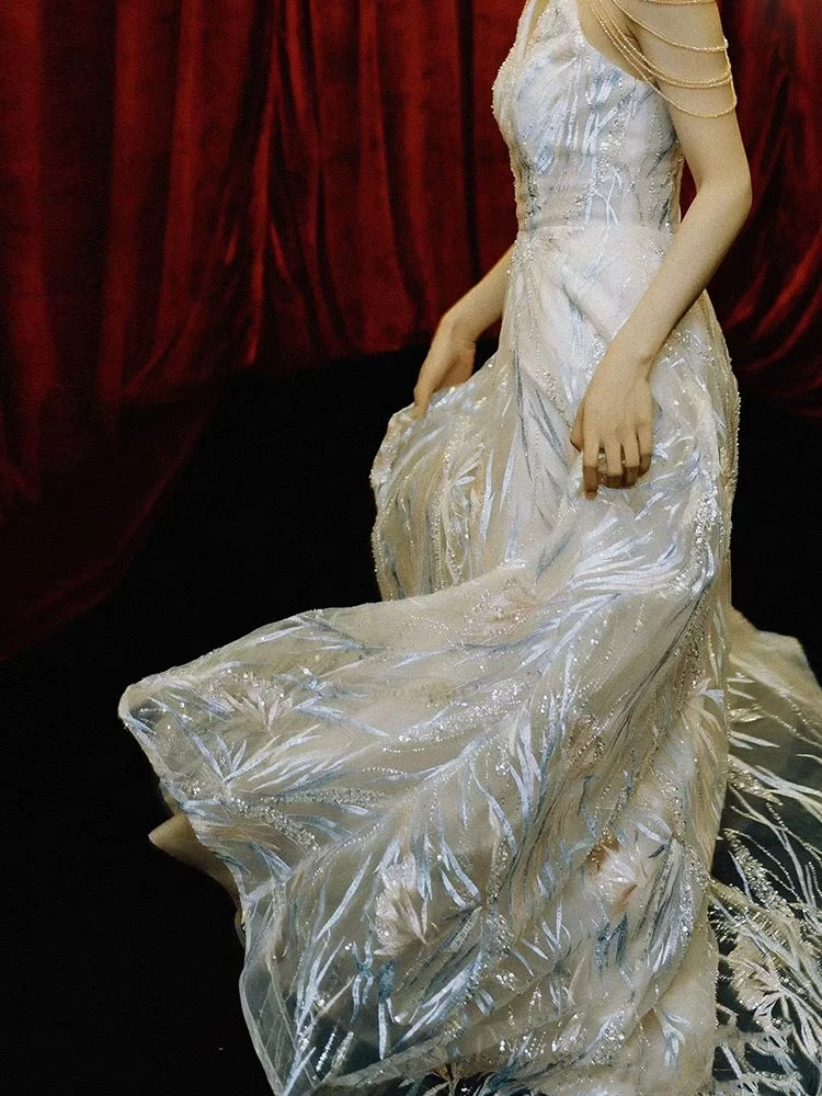 A Line High Neckline Sequin Long Evening Dress Prom Dresses SD1637