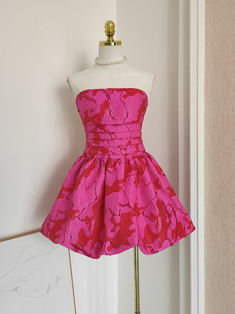 A line Strapless Satin Pink Floral Vacation Dresses Short Birthday Dress SD1260