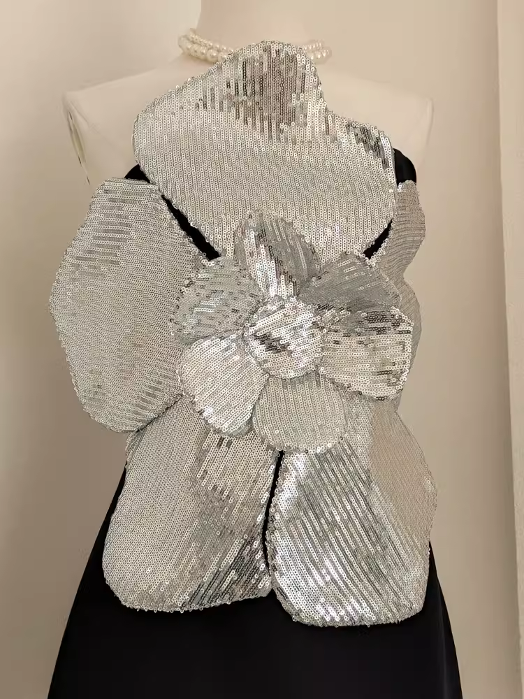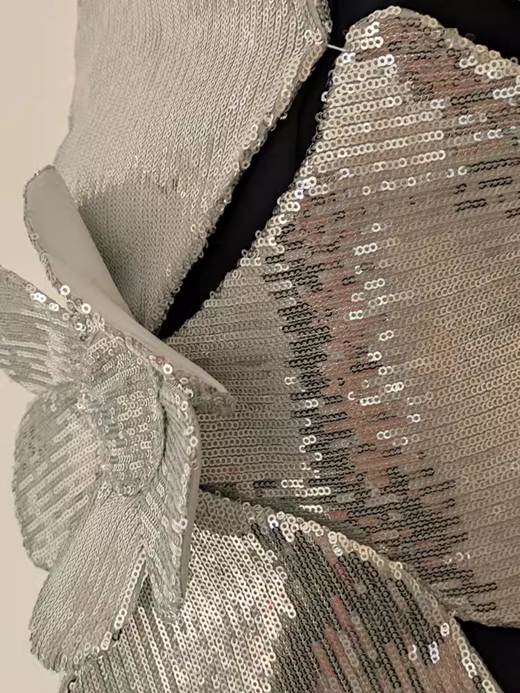 A line Strapless Sequin Travel Vacation Dress Short Black Birthday Dress SD145