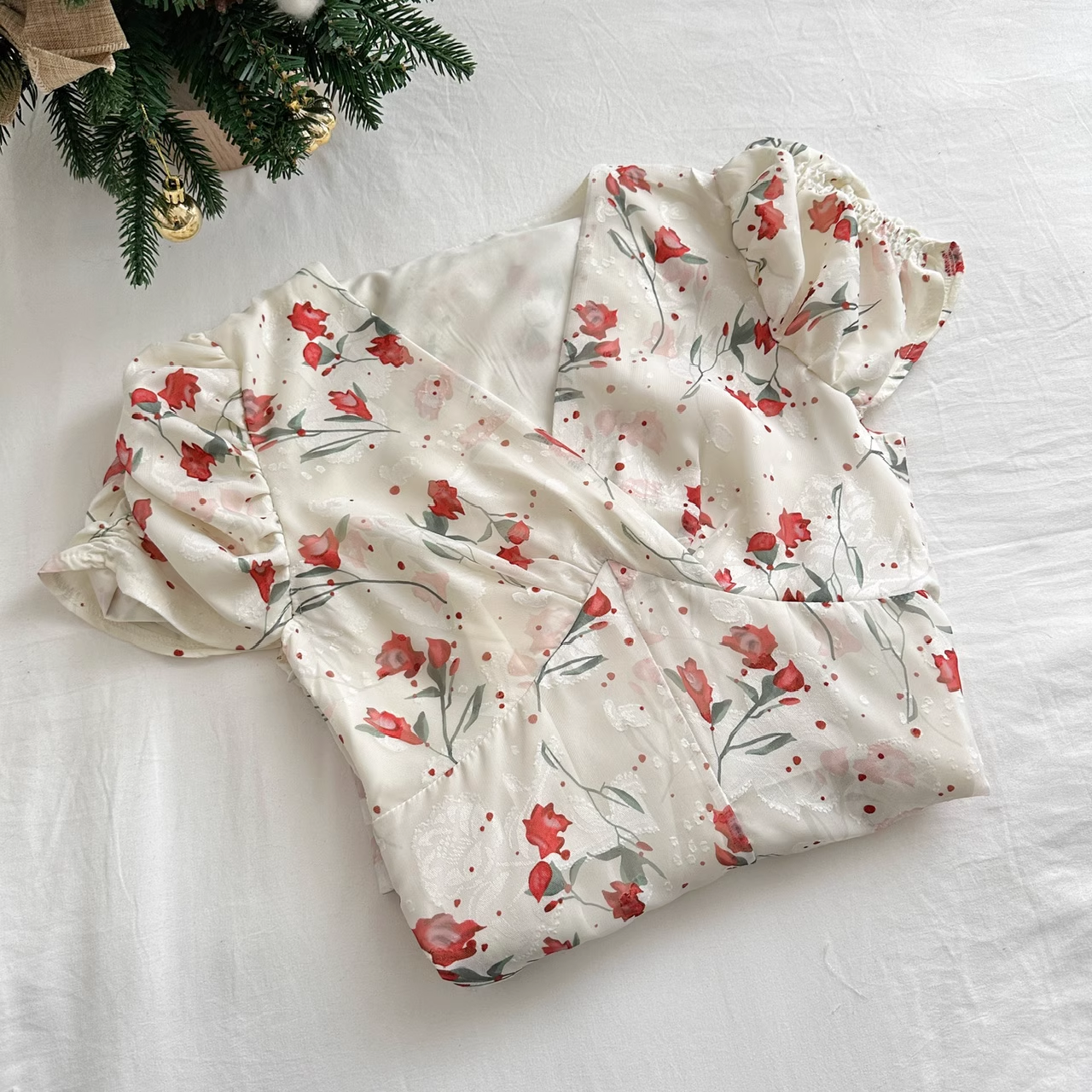 A line V Neckline Short Sleeves Pink Floral Dress Beach Holiday Dresses SD284