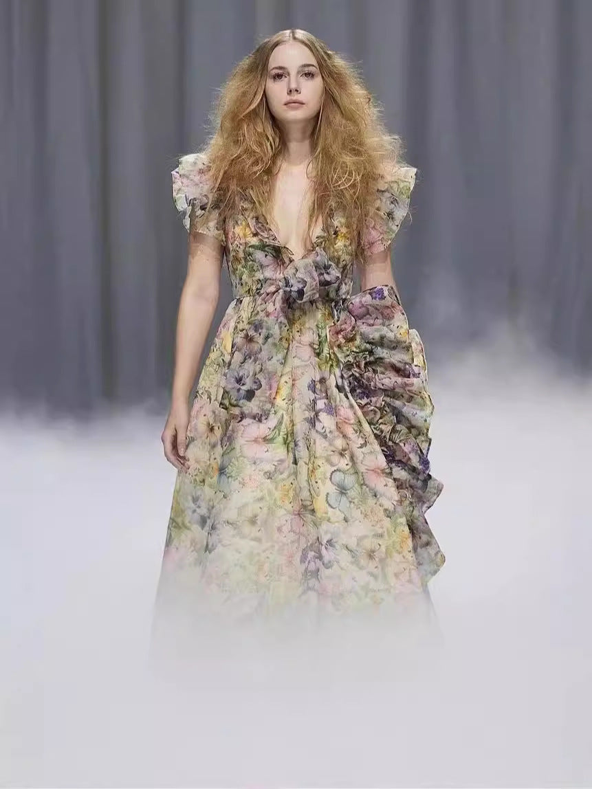 Australian Minority V-Leading Flying Sleeves Of The Same Holiday Wind Bow Bow Waist Dress Dress Dress Woman
