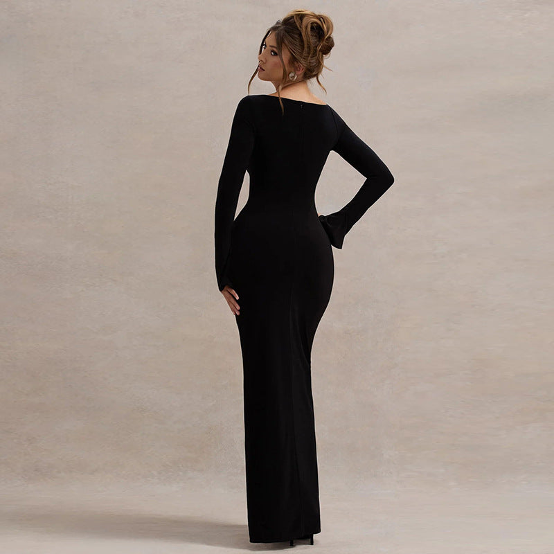Autumn 2025 New Bag Ass Dress Temperament Sexy Body-Slanted Shoulder Open Skirt Dress Woman DJPT