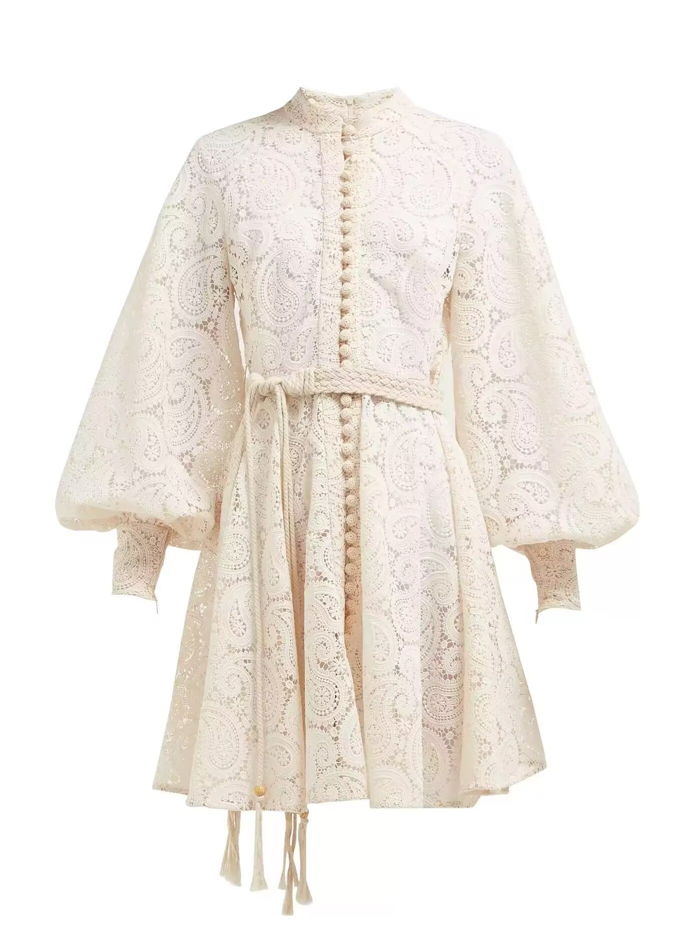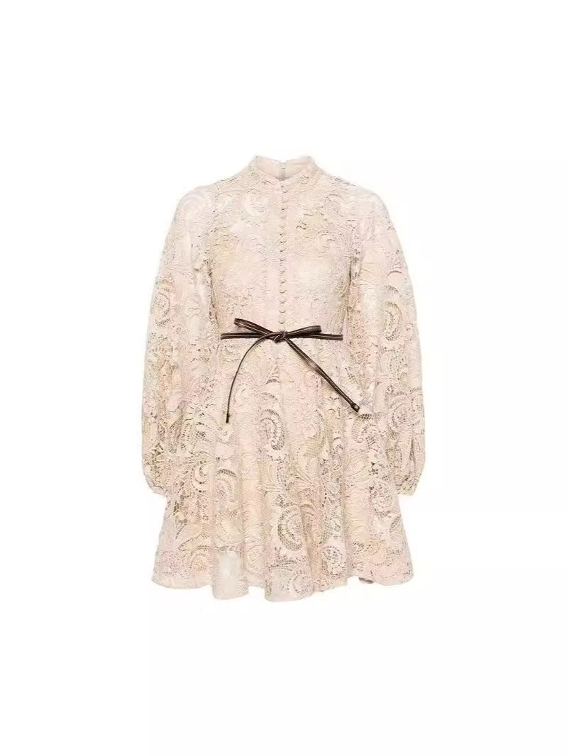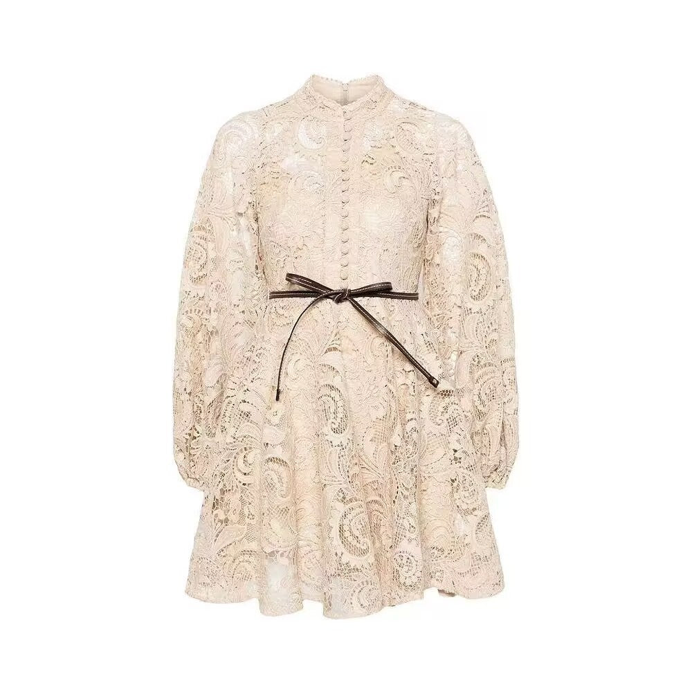 Autumn And Winter Australian Trendy Brand Lin Yuner Star Of The Same Retro Hollow Lace Lantern Sleeve Dress