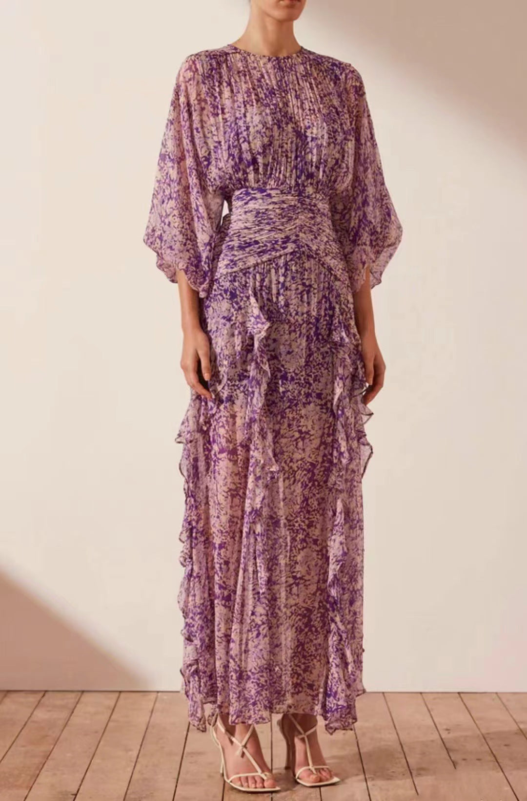 Autumn New Round Collar Lantern Sleeves With Lotion Side Of The Dressing Lady