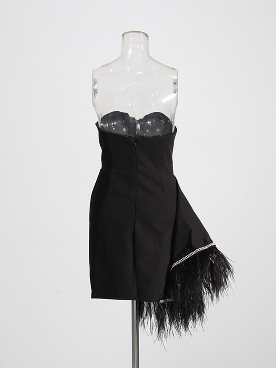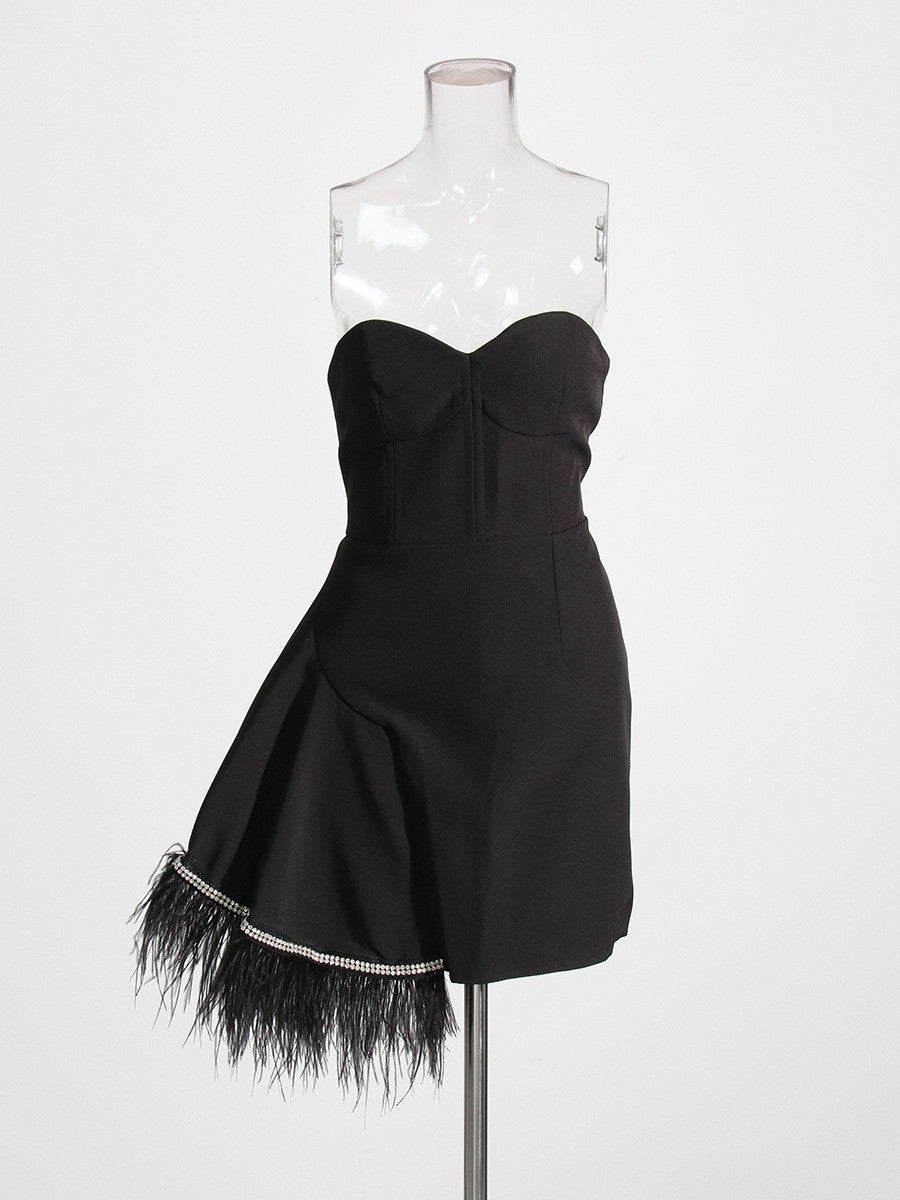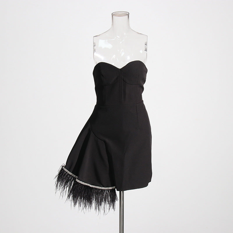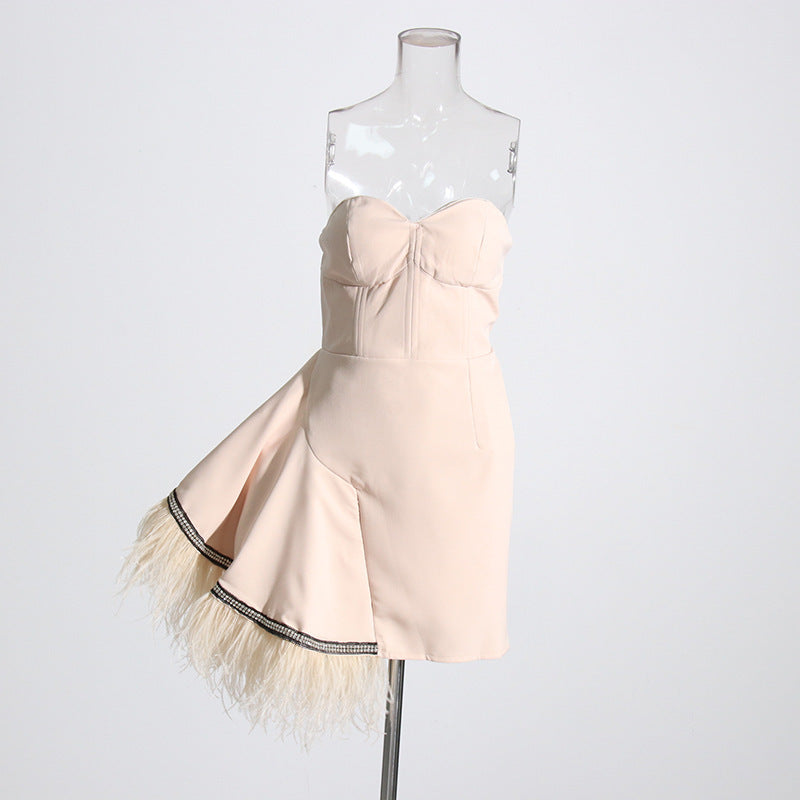 Babes Dress Woman 2025 Spring New Temperament Feather Splicing Flower Set Body Bram Dress Dress