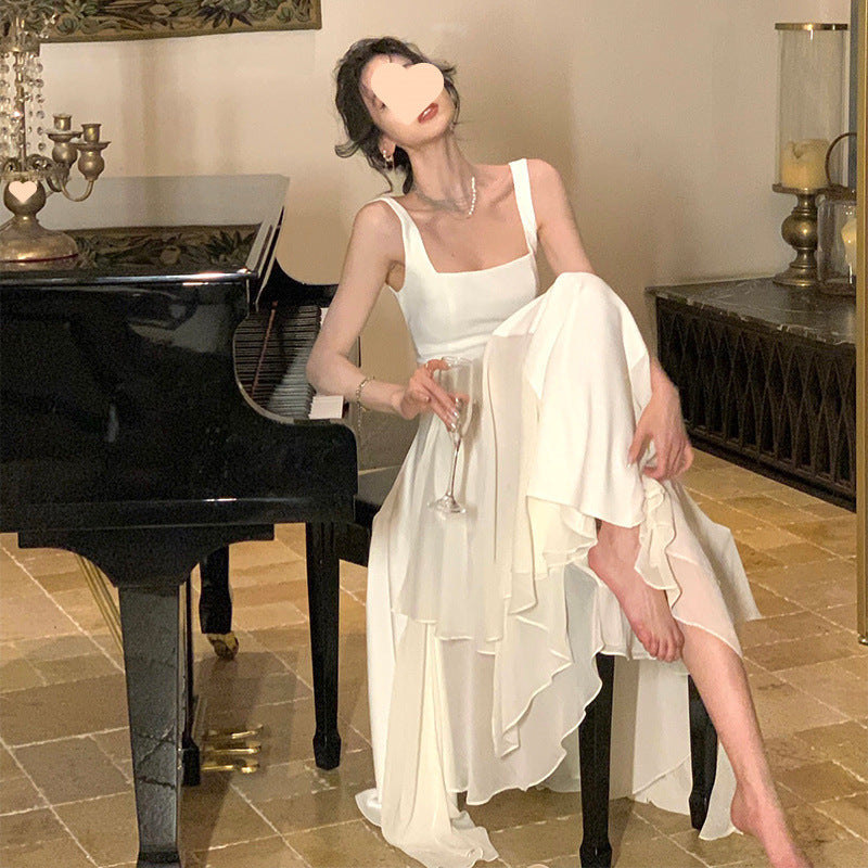 Ballet-Style White Sling Dress Women's Summer French-Style Niche Design High-End Waist-Like Dress DJPT