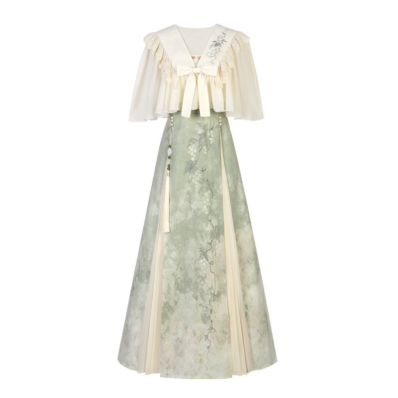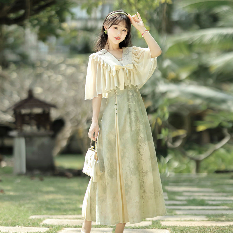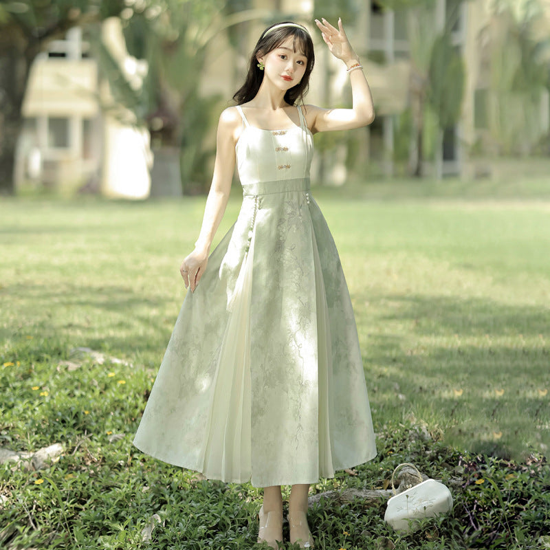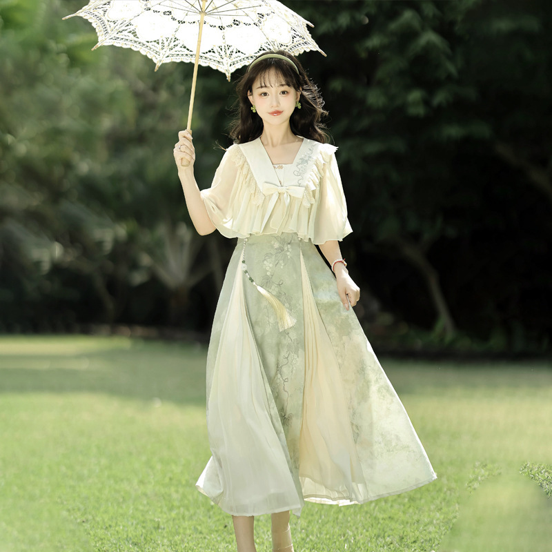 Blue Poetry Chinese Style Improvement Han Elements Women's Outer Sling Skirt Suit 9069