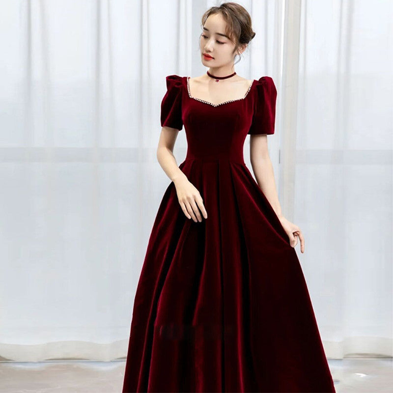 Bridal Toasting Clothes Big-Size Fatmm Spring 2025 New Wine Red Back Door Engagement Evening Dress