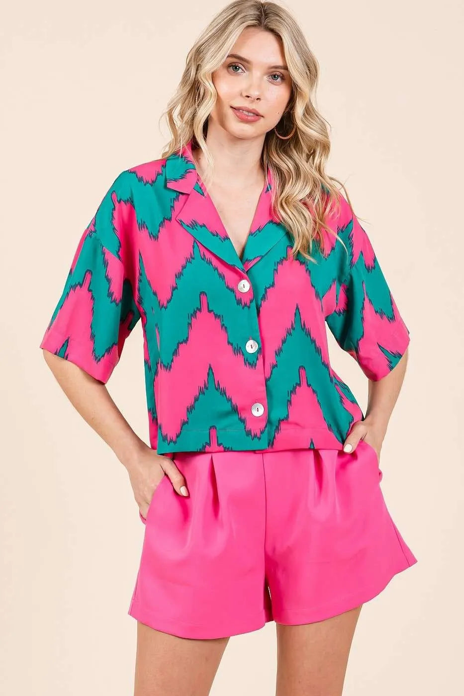 Chevron Print Short Sleeve Crop Shirt DJPT