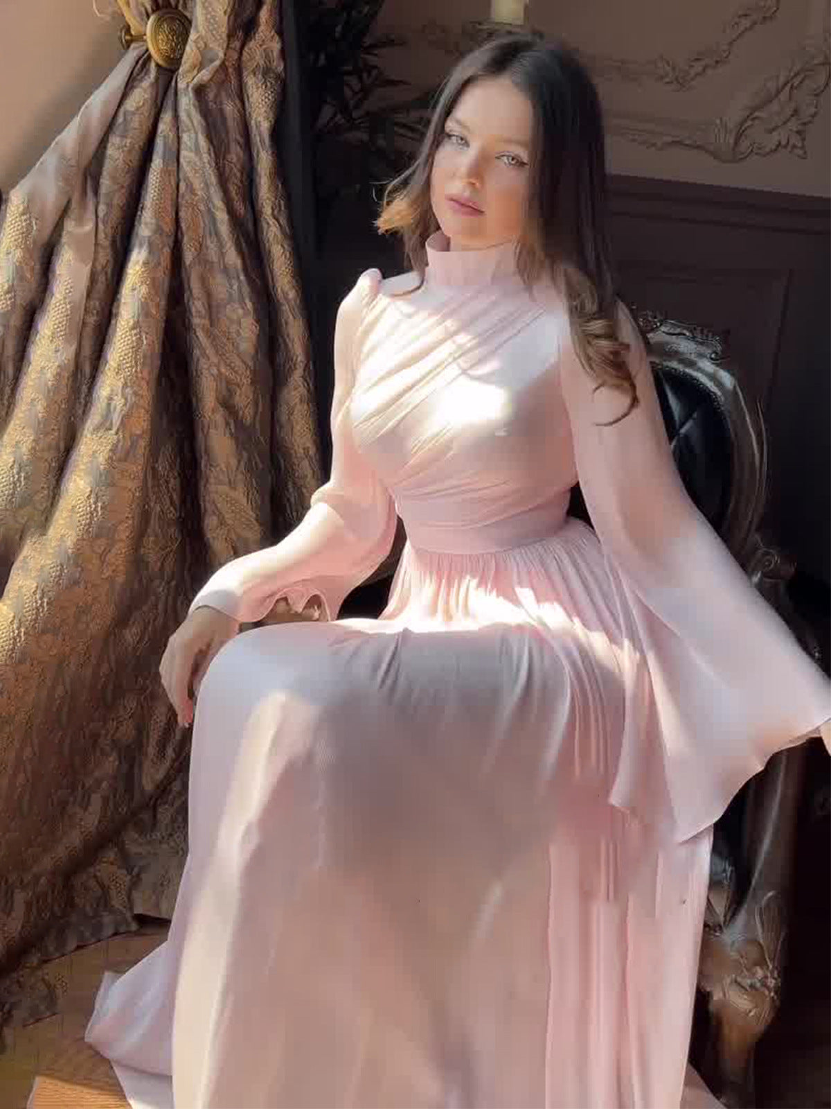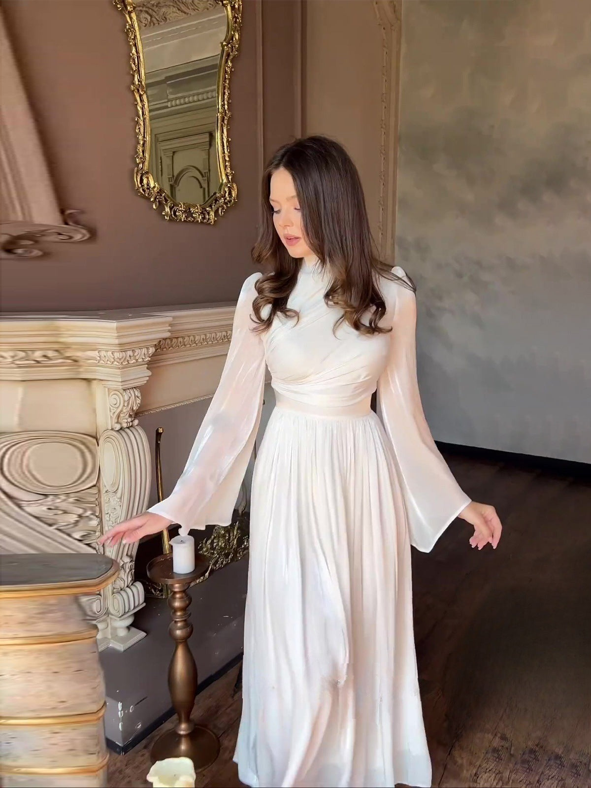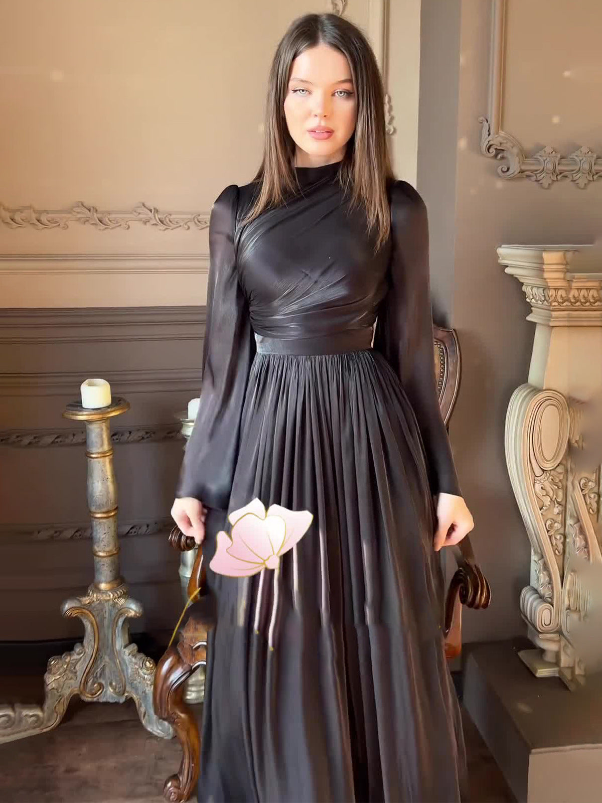 Collar Dress Women's 2025 New Long-Sleeved Tea Break French Waist-High Dress