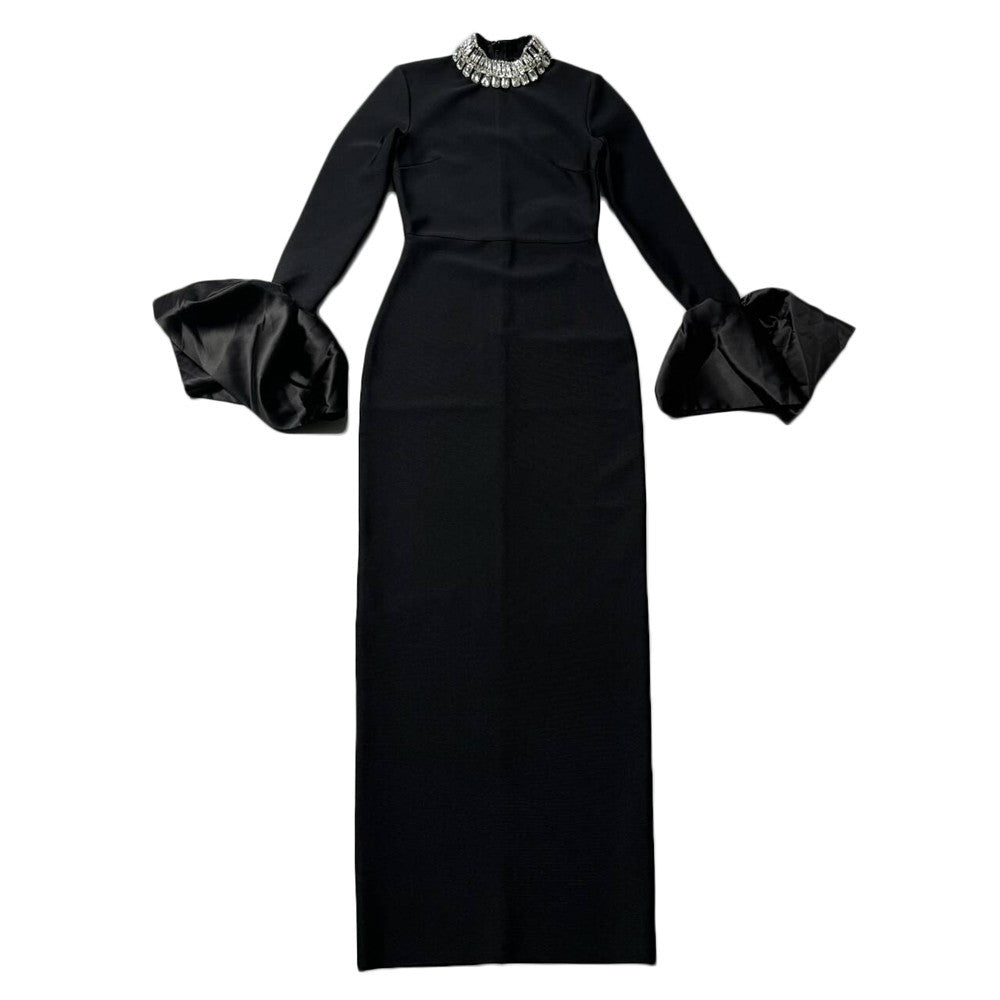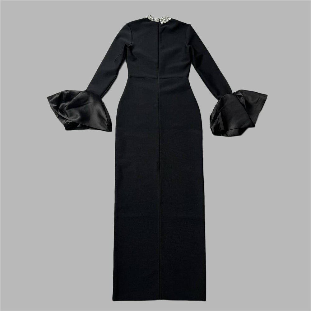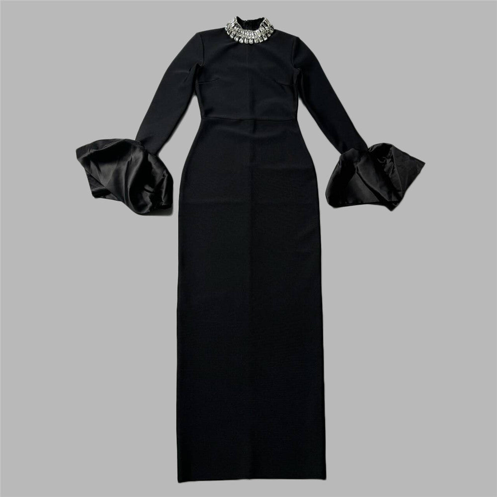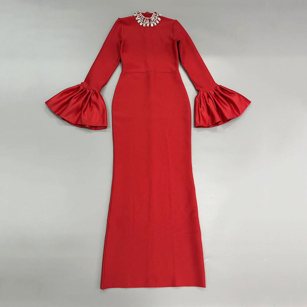 Collar Horn Sleeve Nail Beads With Bandiding Banquet Temperament Elegant Dress Dress