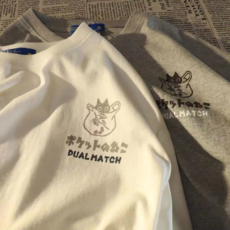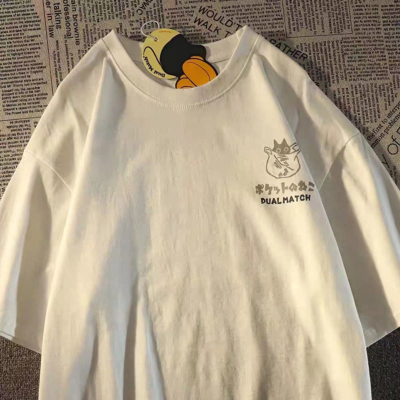 Cotton Short-Sleeved Cartoon Trend Couple T-Shirts And Men And Women Trendy Brand Loose High Street Half-Sleeve DJPT