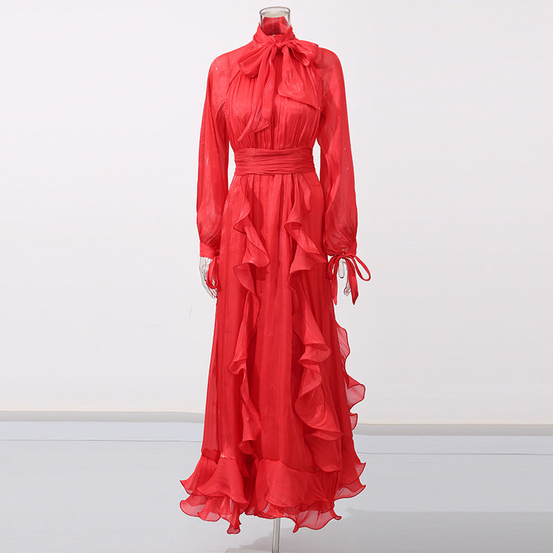 Court Style Tie Design High-End Retro 2025 New Women's Summer Solid Dress