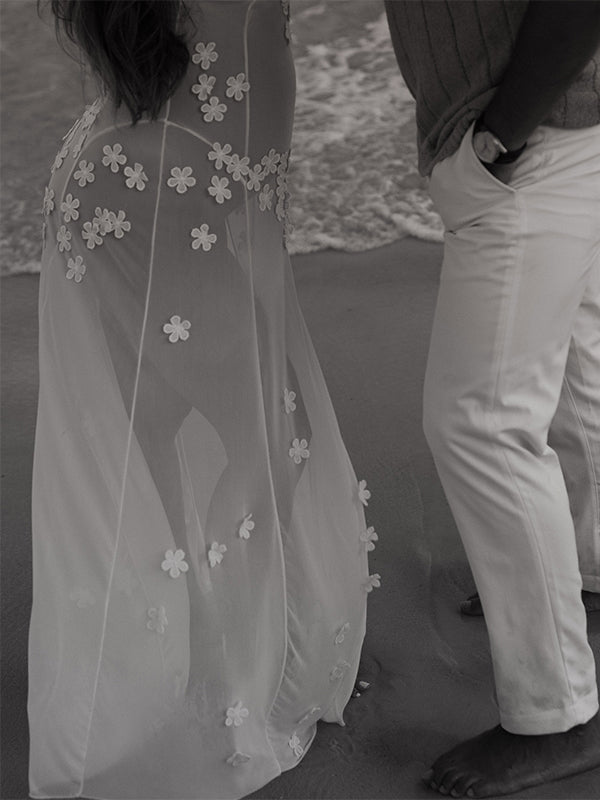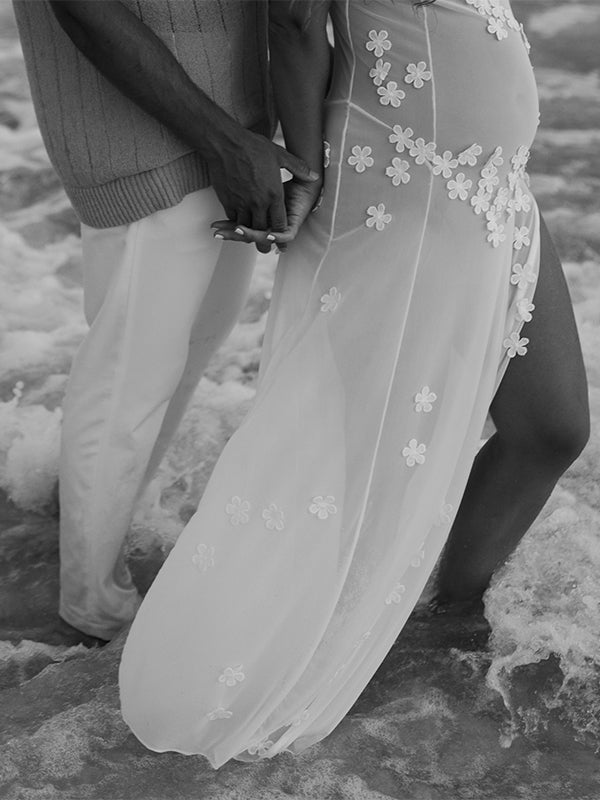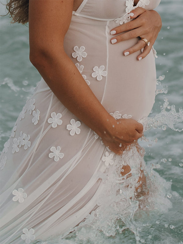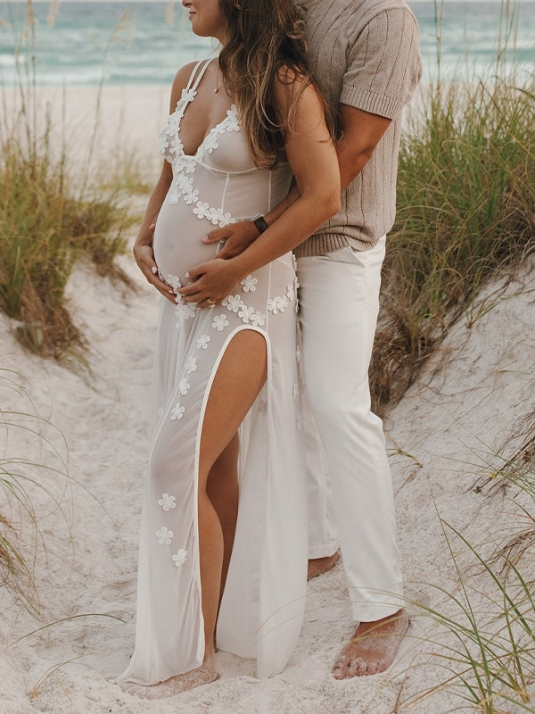 Cut Out Lace Patchwork V-Neck Sheer Side Slit Sleeveless Photoshoot Maternity Maxi Dress Maternity