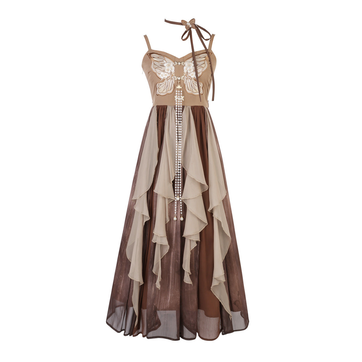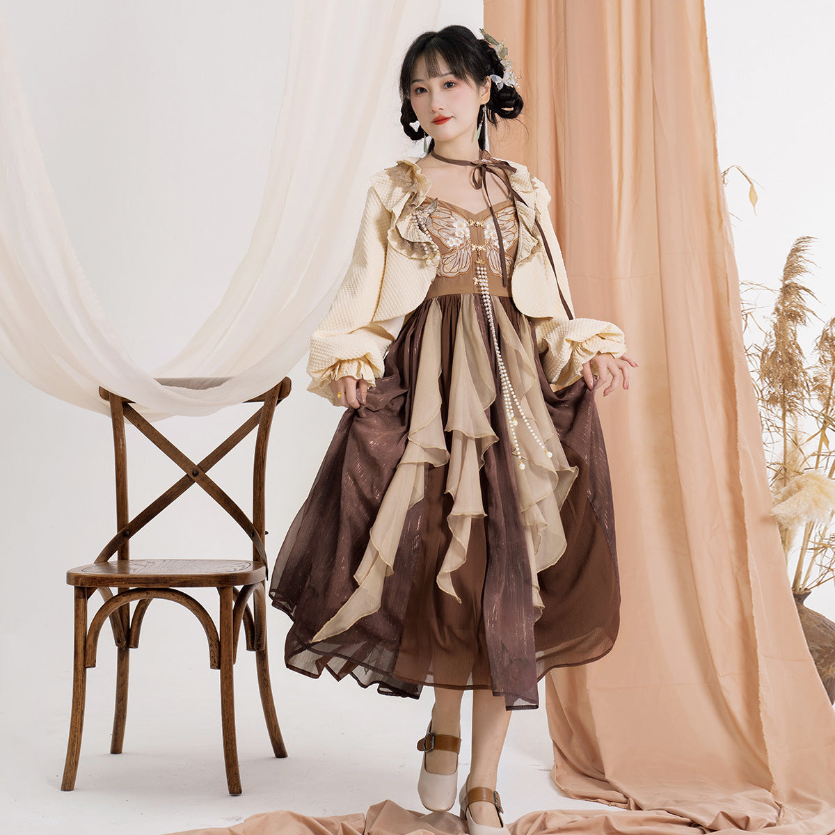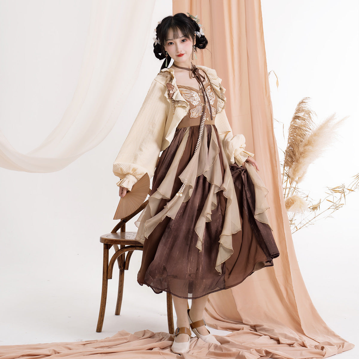 Design Fan Butterfly Chinese Style Improvement Han Element Women's Coat Sling Skirt Suit 8898