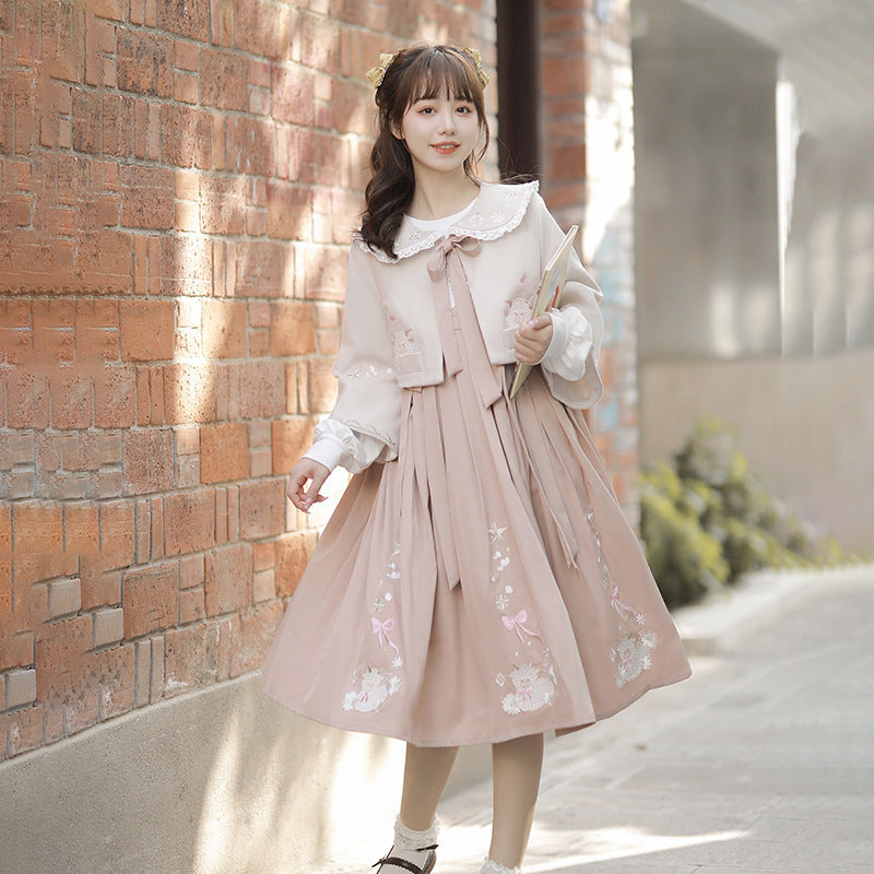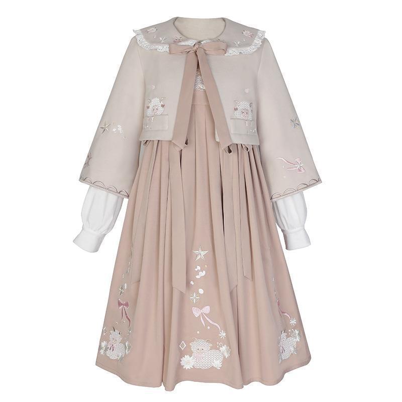 Design Little Sheep Lolita Sling Skirt Lolita Dress Temperament Sweet Three-Piece Set 6444