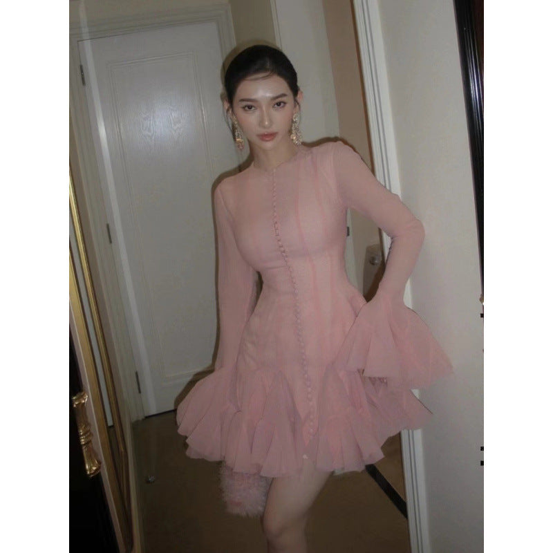Design Long-Sleeved Body To Reduce The Age Of Sweet Dating Dress French Adult Fair Fairy Dress