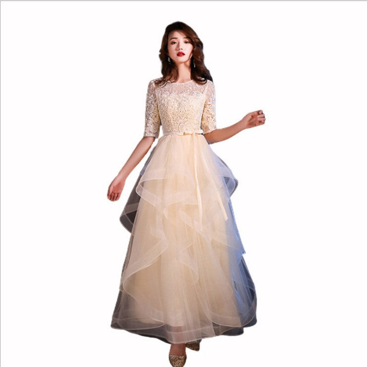 Dress Women 2025 New Banquet Dignified Atmospheric Elegant Champagne-Colored Host Year-End Dress Spring