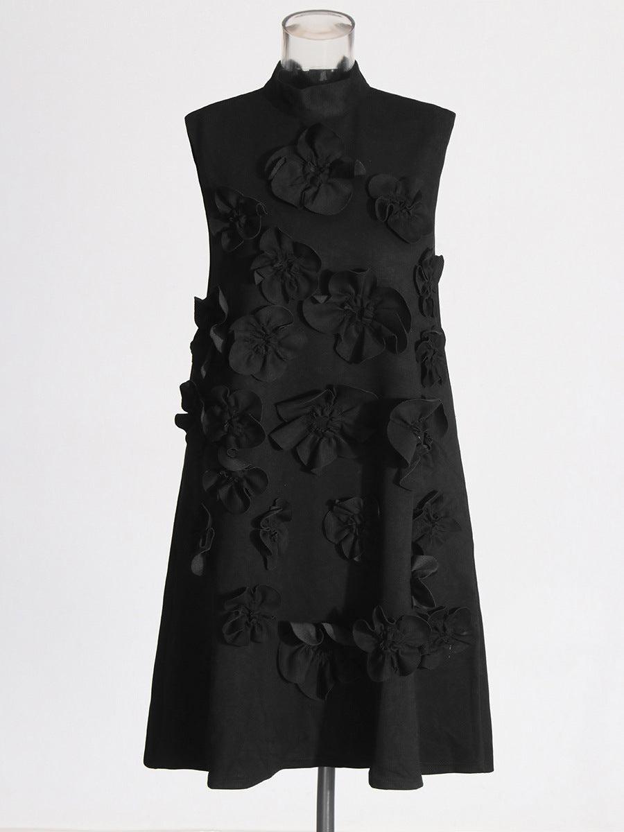 Dress Women 2025 New Fashion High-End Collar Three-Dimensional Flowers Splicing Vest Skirt