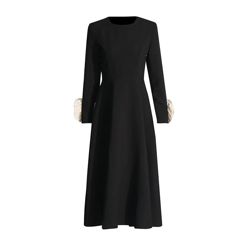 Elegance Style 2025 Summer New Long Three-Dimensional Flowers Decorated High-Waist Simple Dress Woman