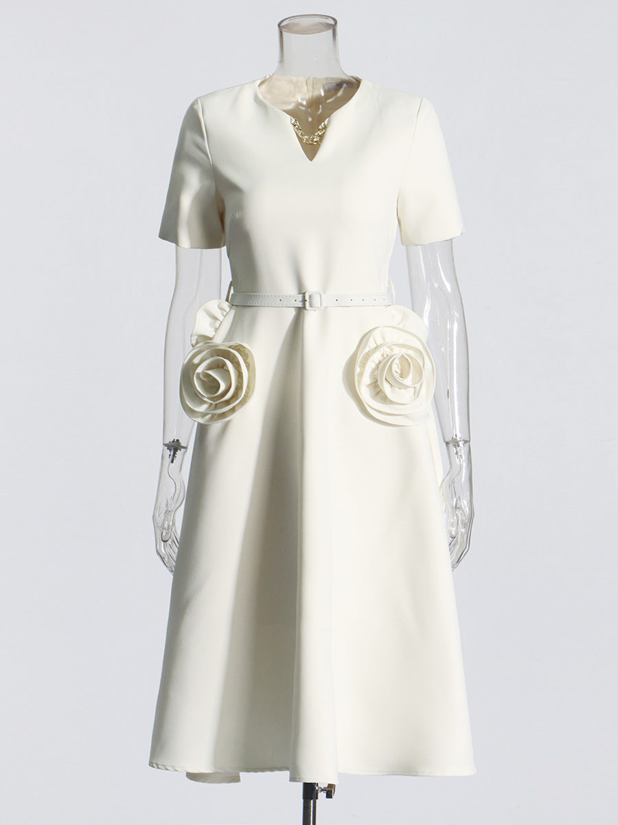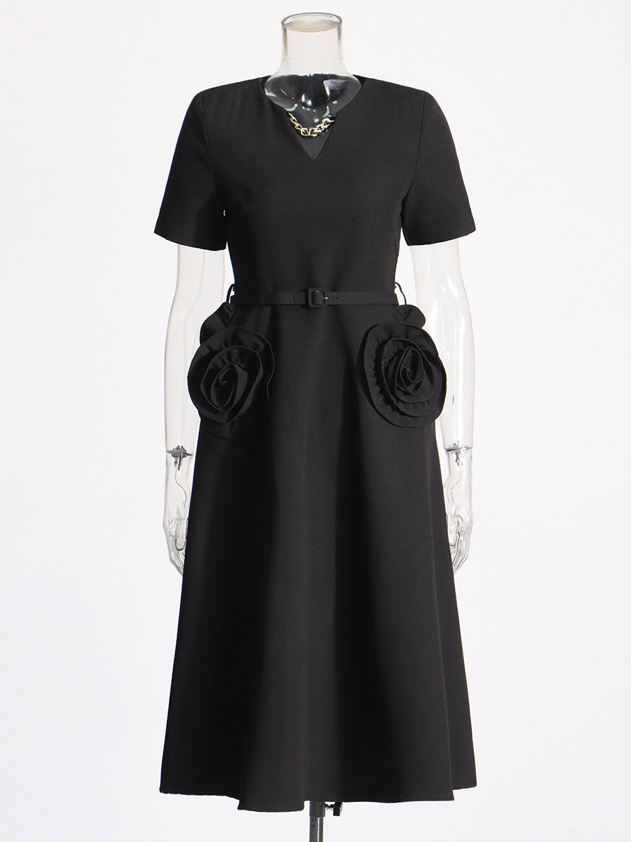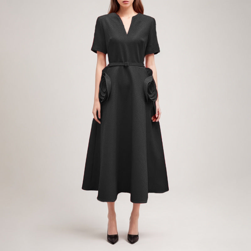 Elegant Style 2025 Spring New V-Neck Rose High-Waisted Dress Dress Dress Woman