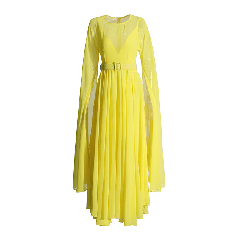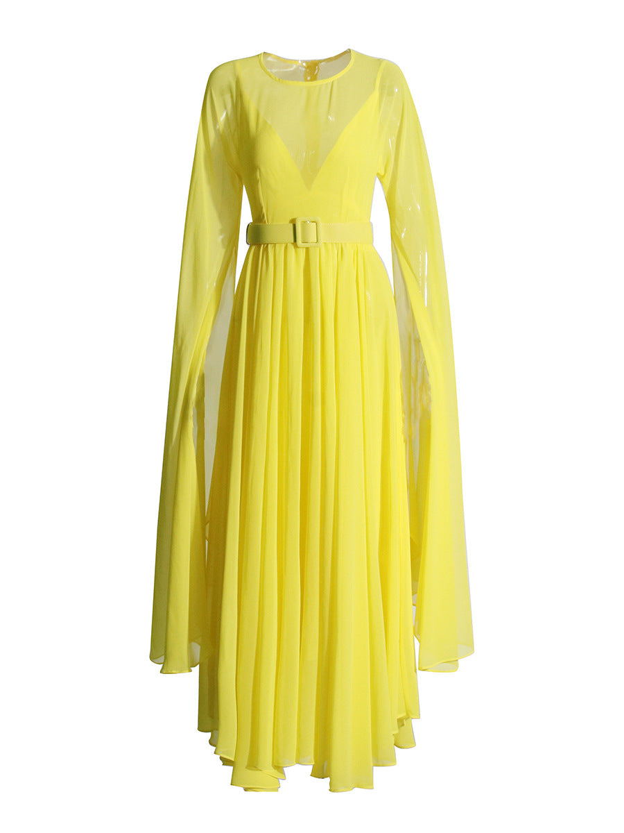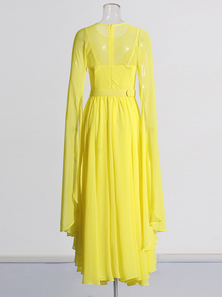 Elegant Style Dress 2025 Spring New Round Horn Sleeves Big Swing Dress Dress Woman