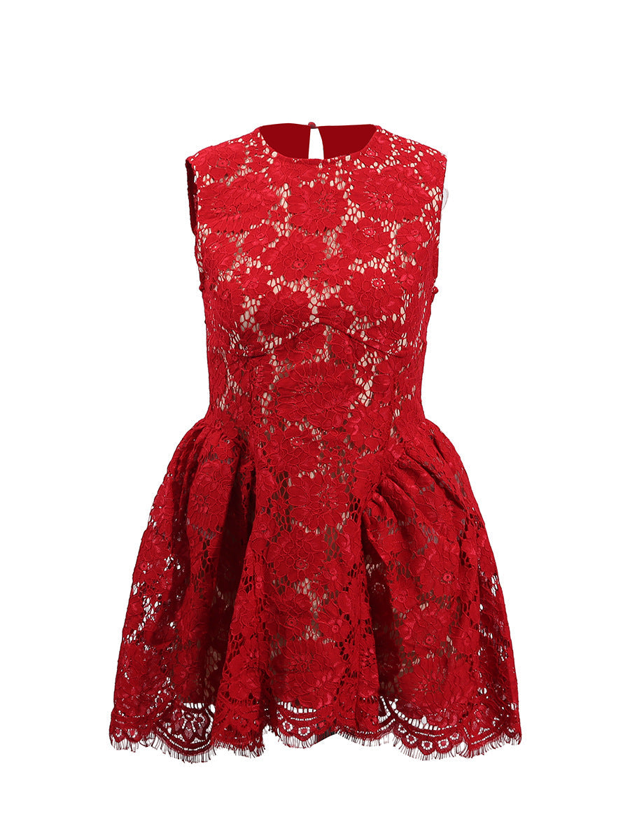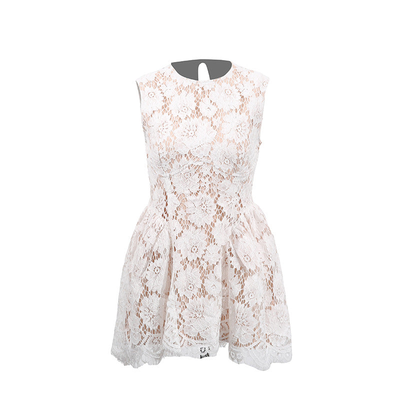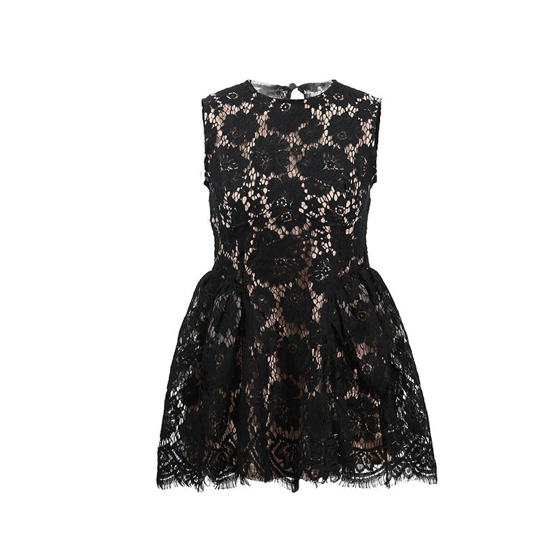 Elegant Style Lace Flower Sleeveless Short Dress 2025 New Round Neck Waist High-Waisted Dress Women's Summer