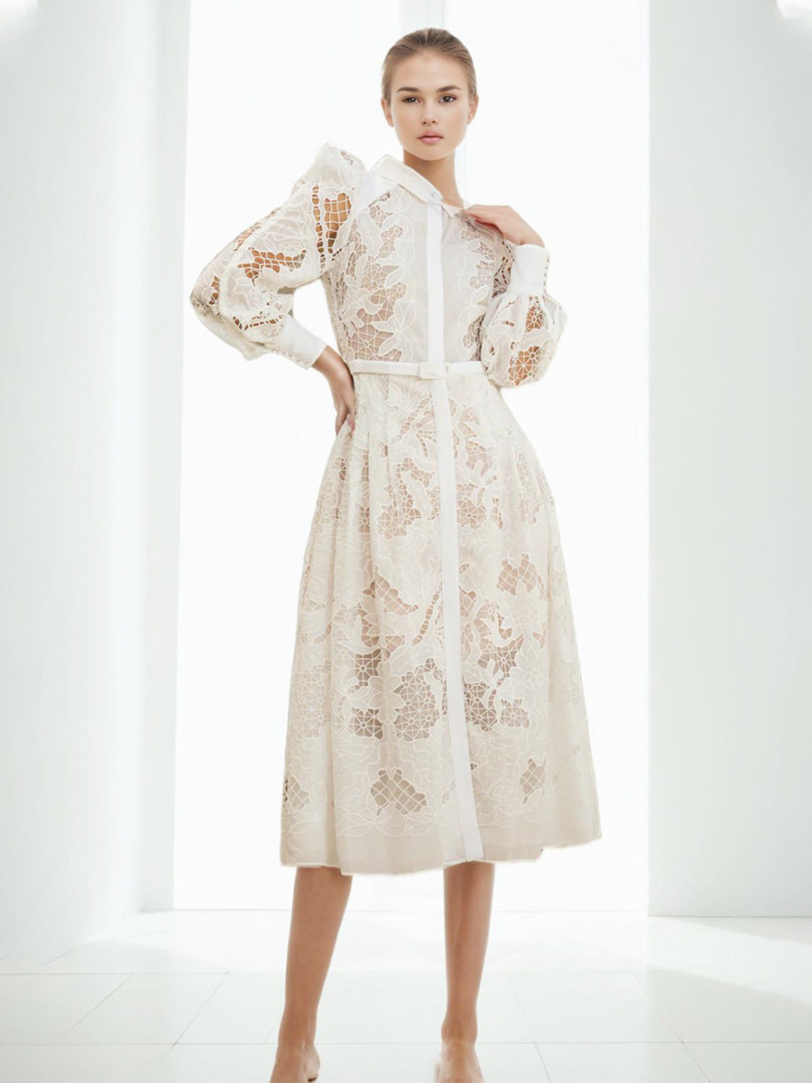 Elegant Temperament Style Dress 2025 Spring New Heavy Industry Embroidered Lantern Sleeve With Dress Dress Woman