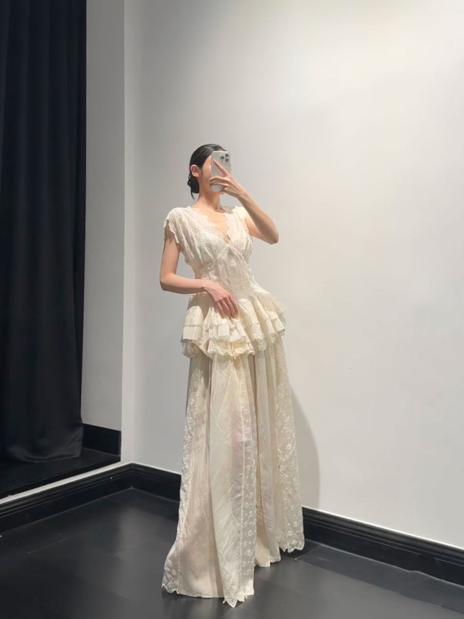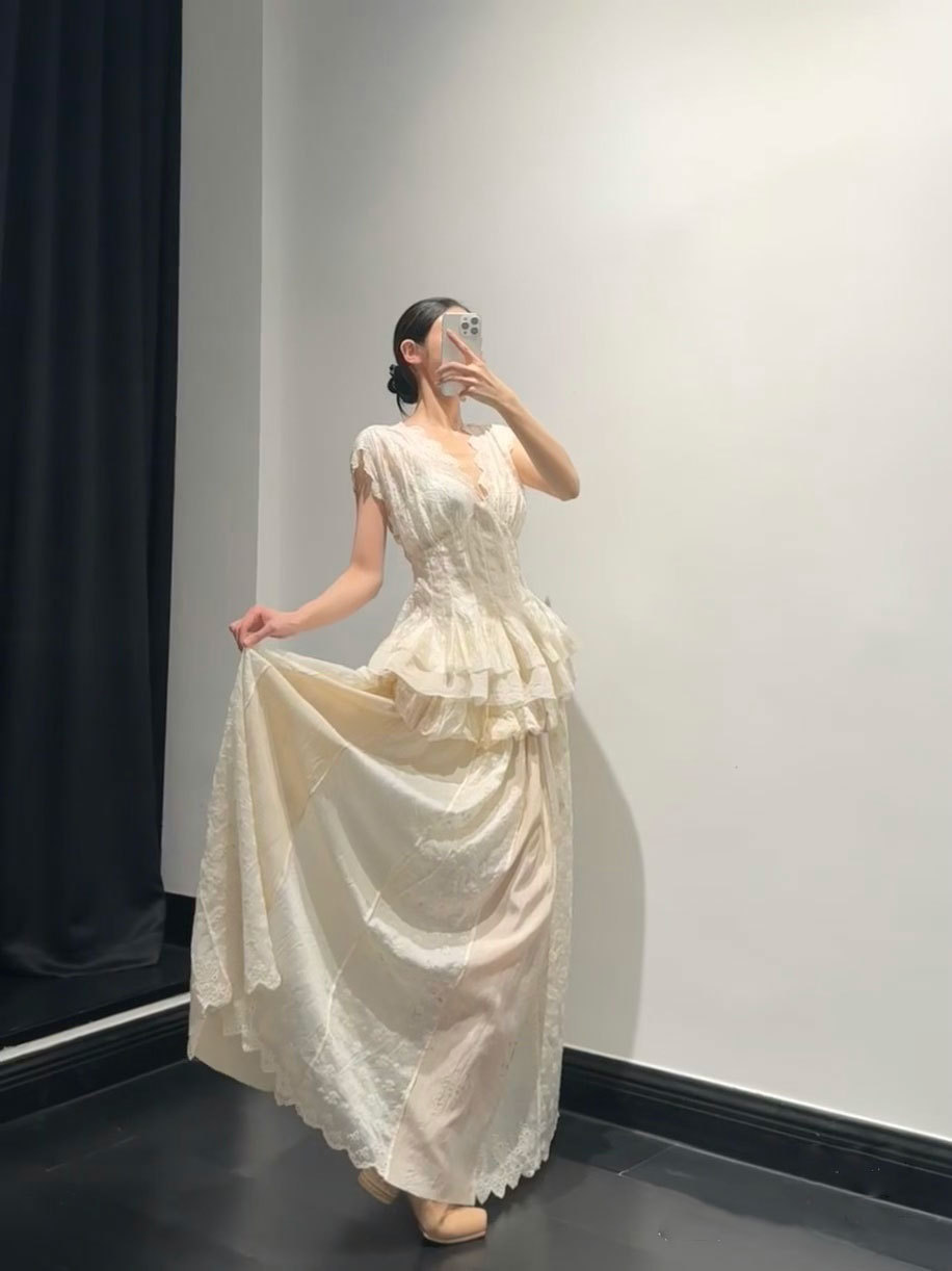 Fairy Lace Lace Lace Waist Blouse Half Dress Set