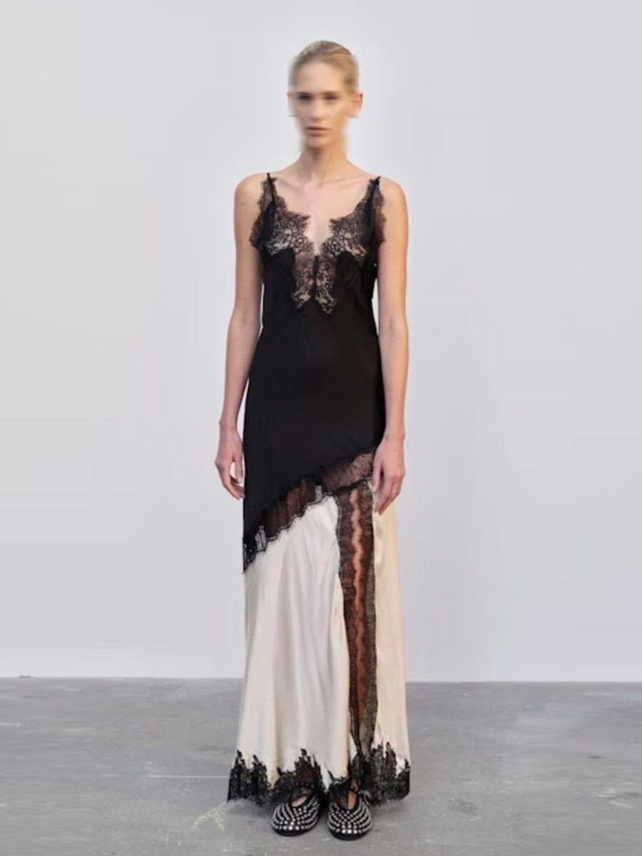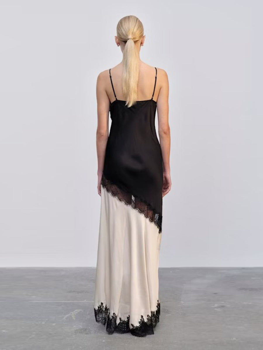 Famous Style Retro Dress 2025 Summer New Sling Lace Splicing Hollow Design Dress Dress Dress