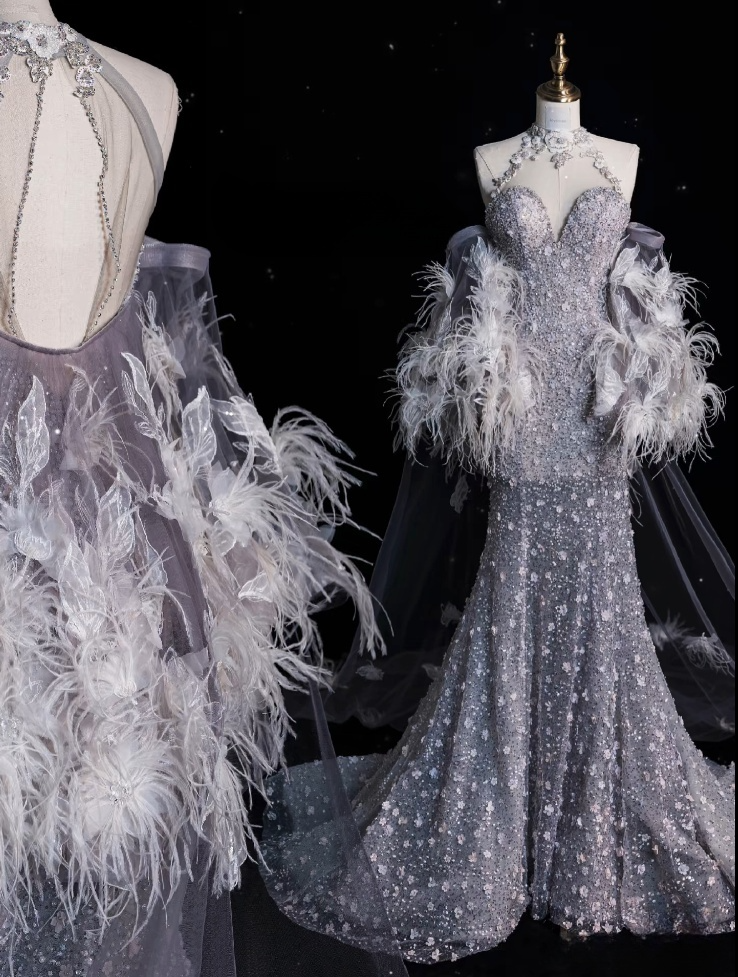 Fashion Mermaid High Neckline Sequin Floral Floor Length Evening Dress Prom Dresses SD1923