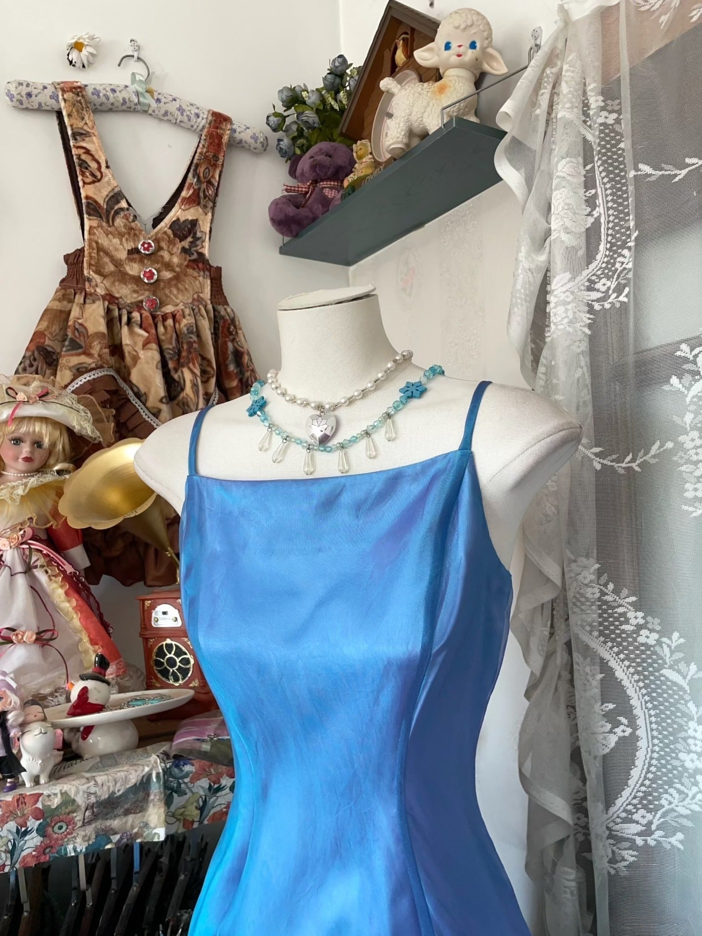 Fashion Mermaid Spaghetti Straps Blue Floor Length Evening Dress Prom Dresses SD1880