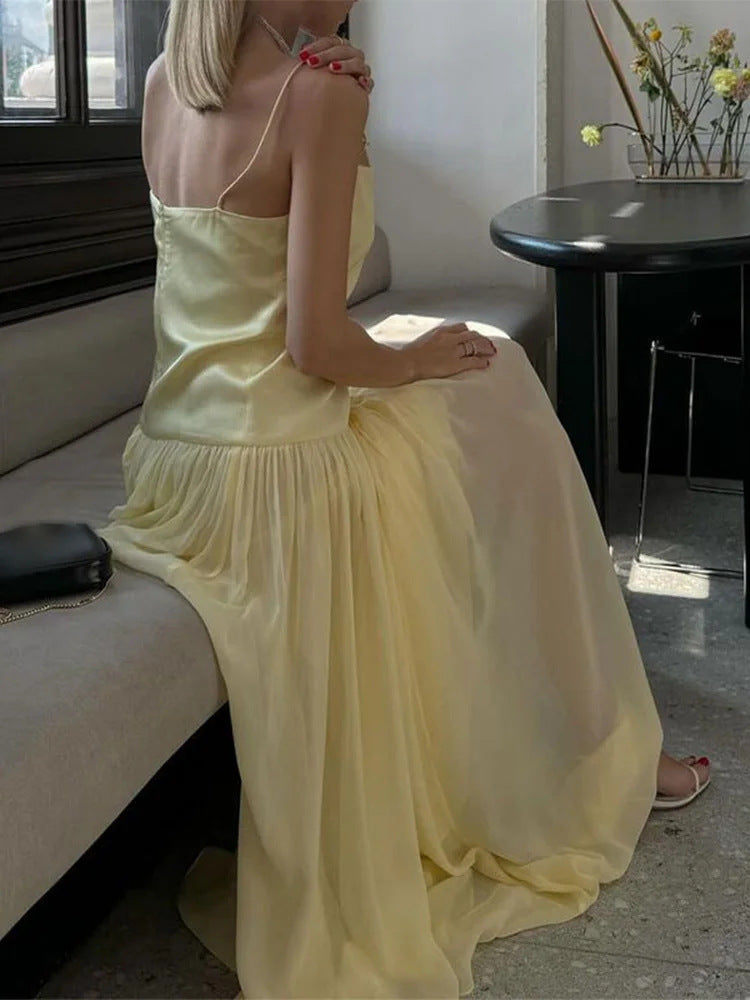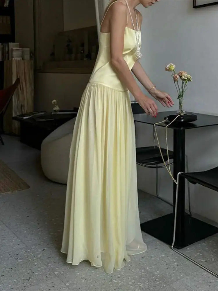 French Sexy Folding Solid-Colored Chiffon Dress In Summer 2024