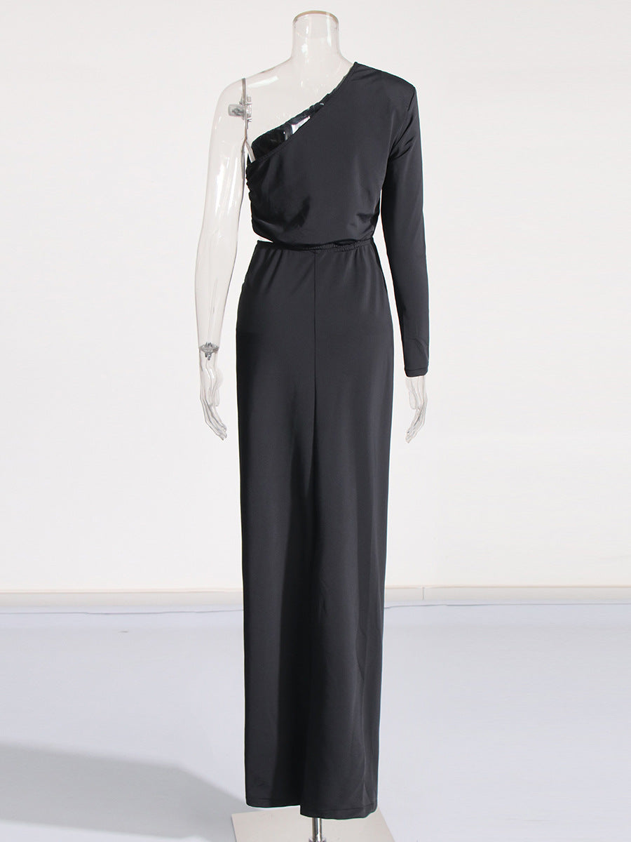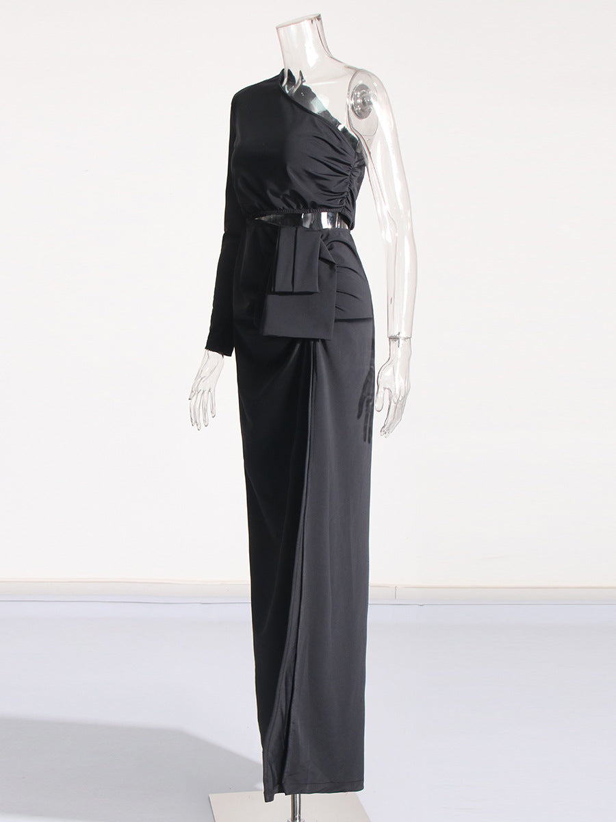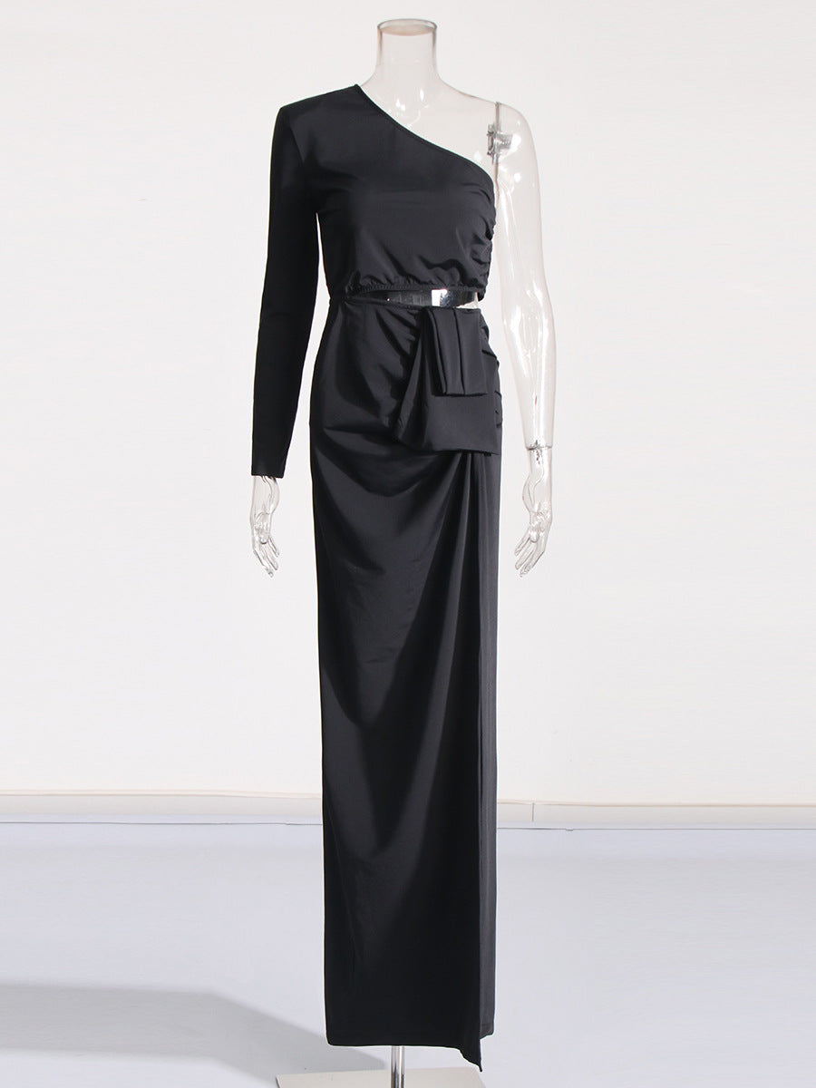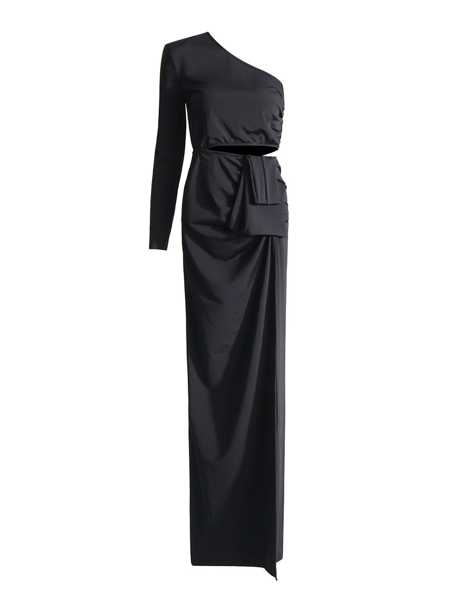 Goddess Wind Bag Hip Skirt Women's Dress 2025 New Slant Shoulder Shoulder Hollow Elastic Body Dress