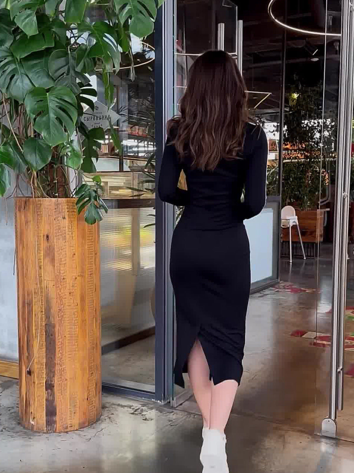 Hips Light Cooked Wind Comfortable And Casual Body Slim Thin Long Sleeve Pull-And-Slung V-Neck Dress