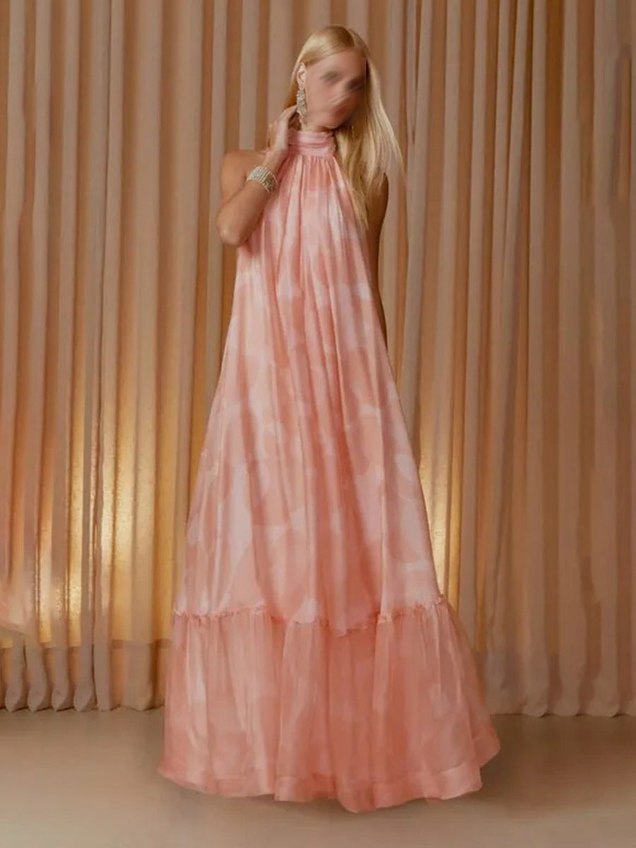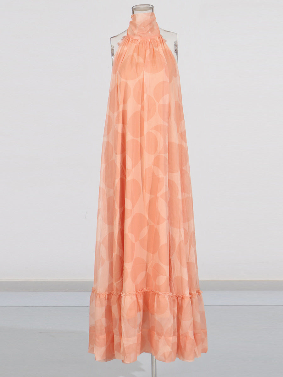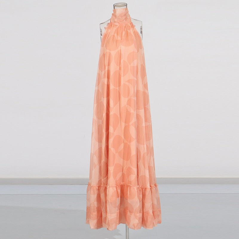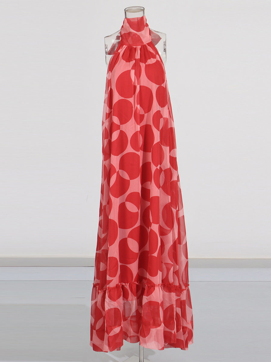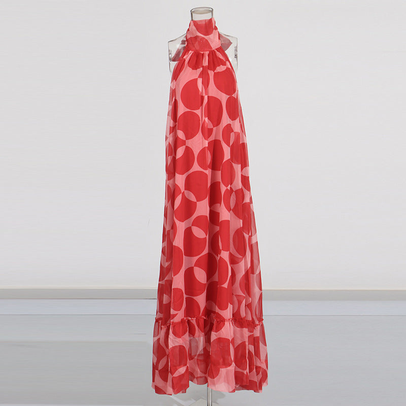 Holiday Wind Sleeveless Hanging Neck Ribbon Dress 2025 New Back Wave Dot Print Dress Women's Summer