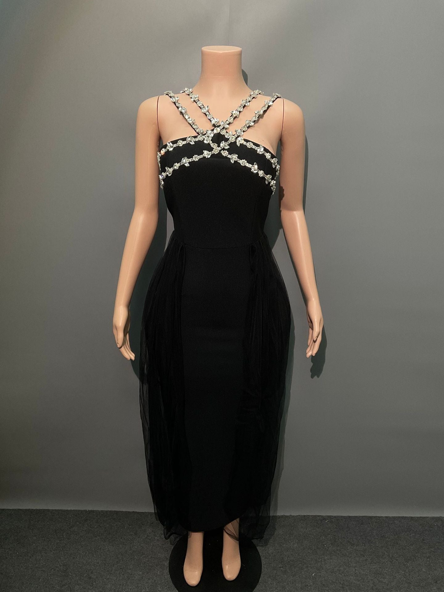 Hot Temperament Elegant Female Banding Dress Net Yarn Studded Dress High-End Evening Dress
