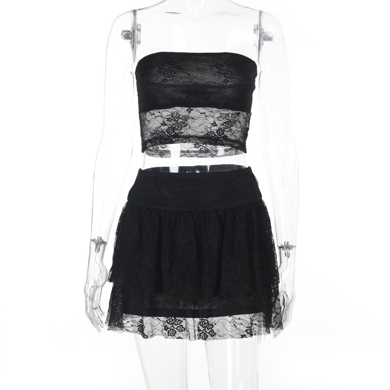 Hot Vintage Lace Personality Trend Design Luo Umbilized Bosom Skirt Suit DJPT