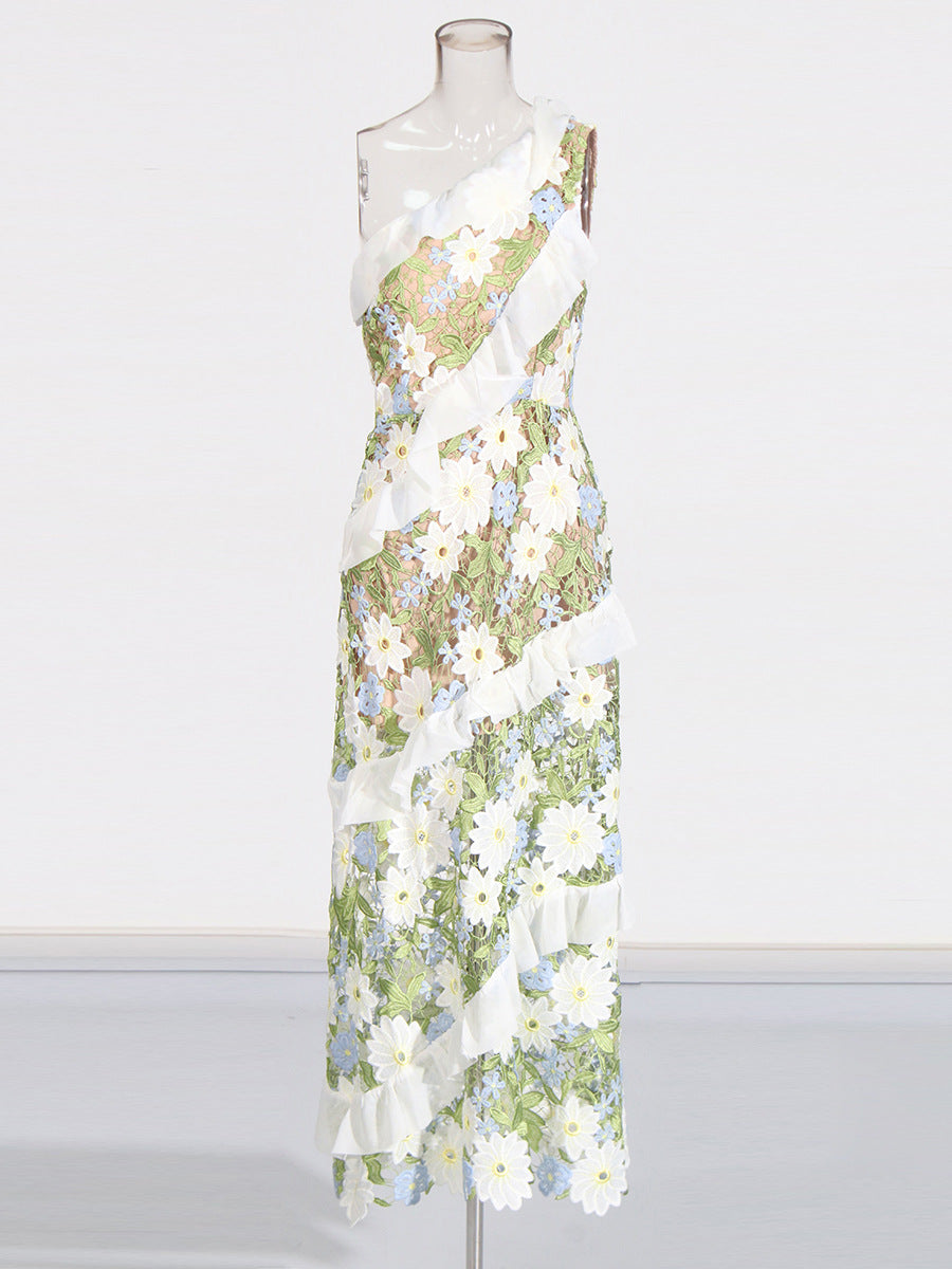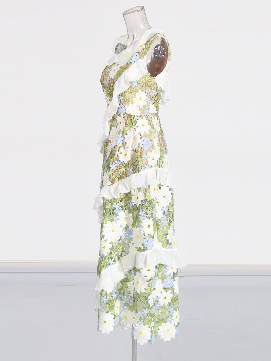 Idyllic Dress 2025 Summer New Sleeveless Water-Sowed Flower Embroidery Splicing Mesh Dress