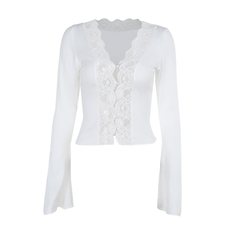 Lace Lace Lace Short Ribbon Ribbon Blouse In French Style Sexy Solid Color T-Shirt DJPT