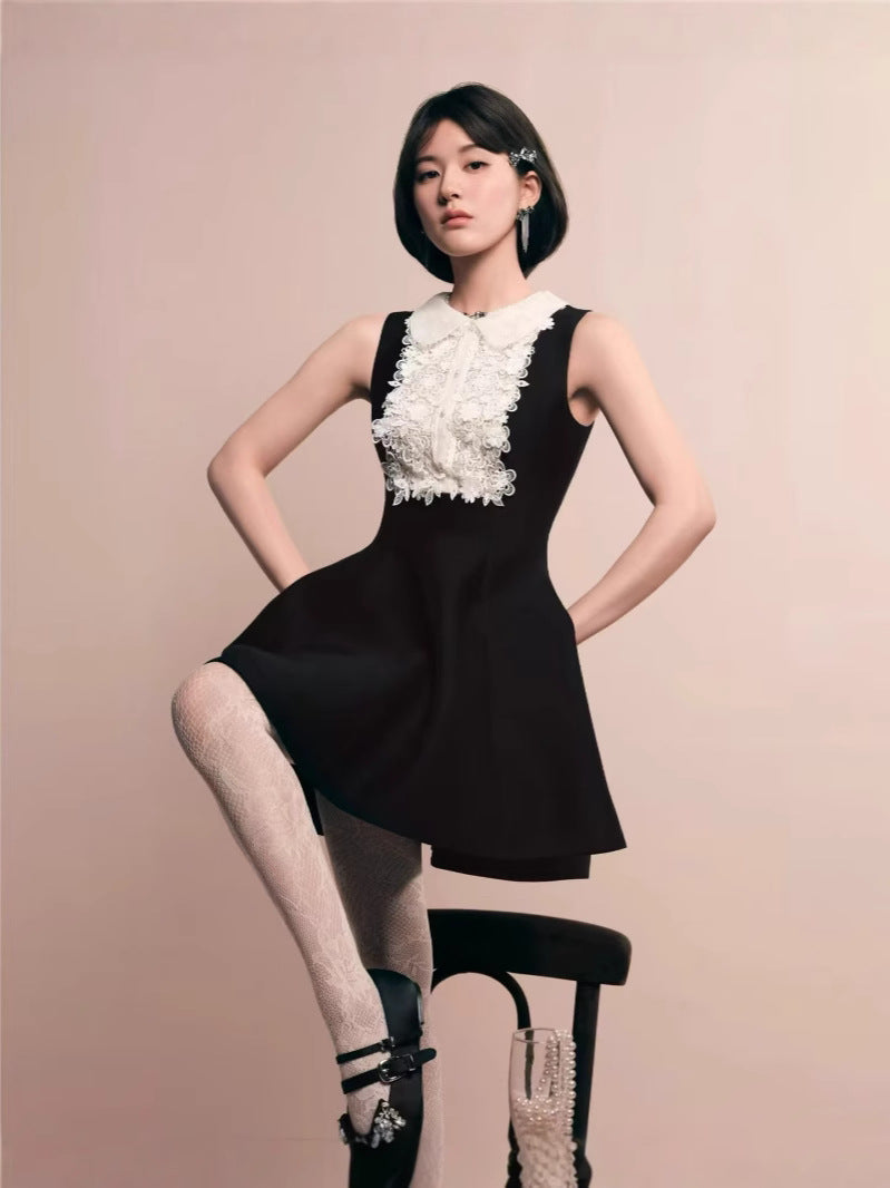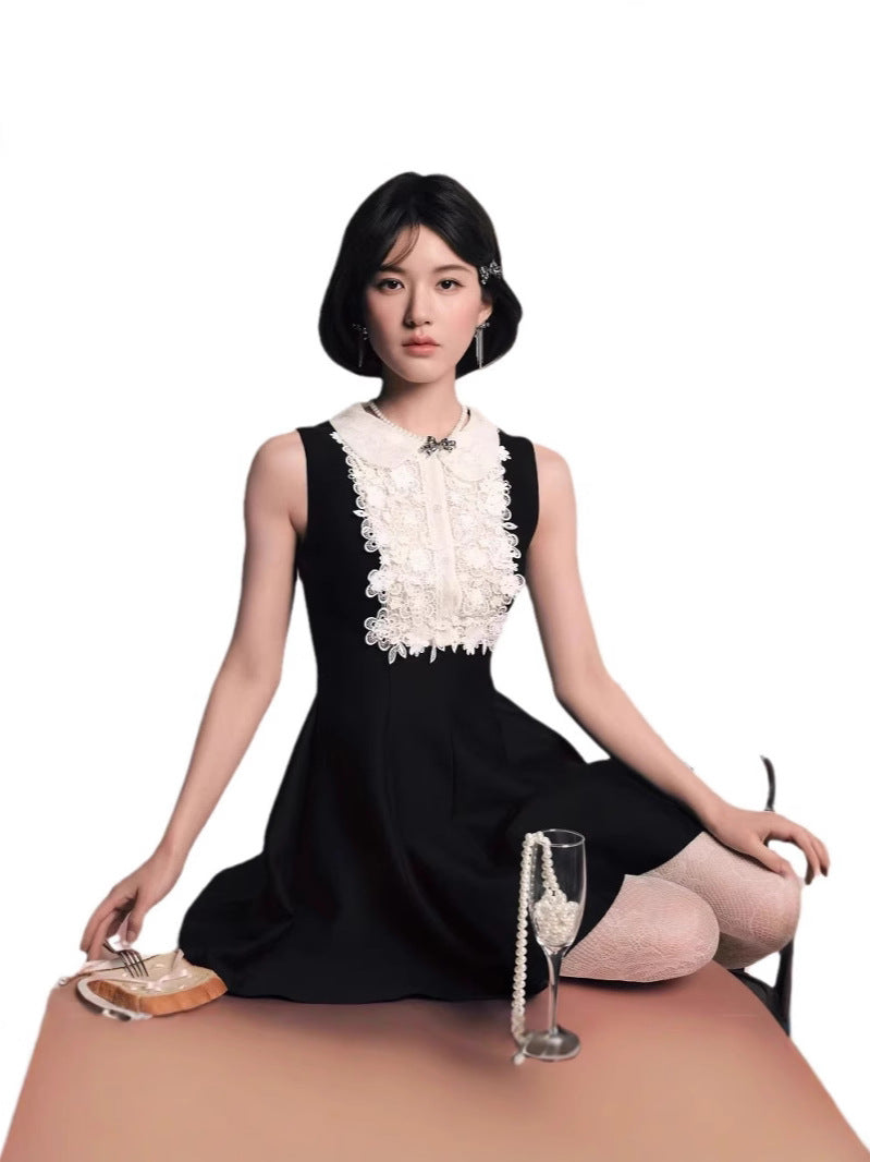 Luth's Same French Gold Muffled Small Black Dress Spring Temperament To Slim Up Thin Dress