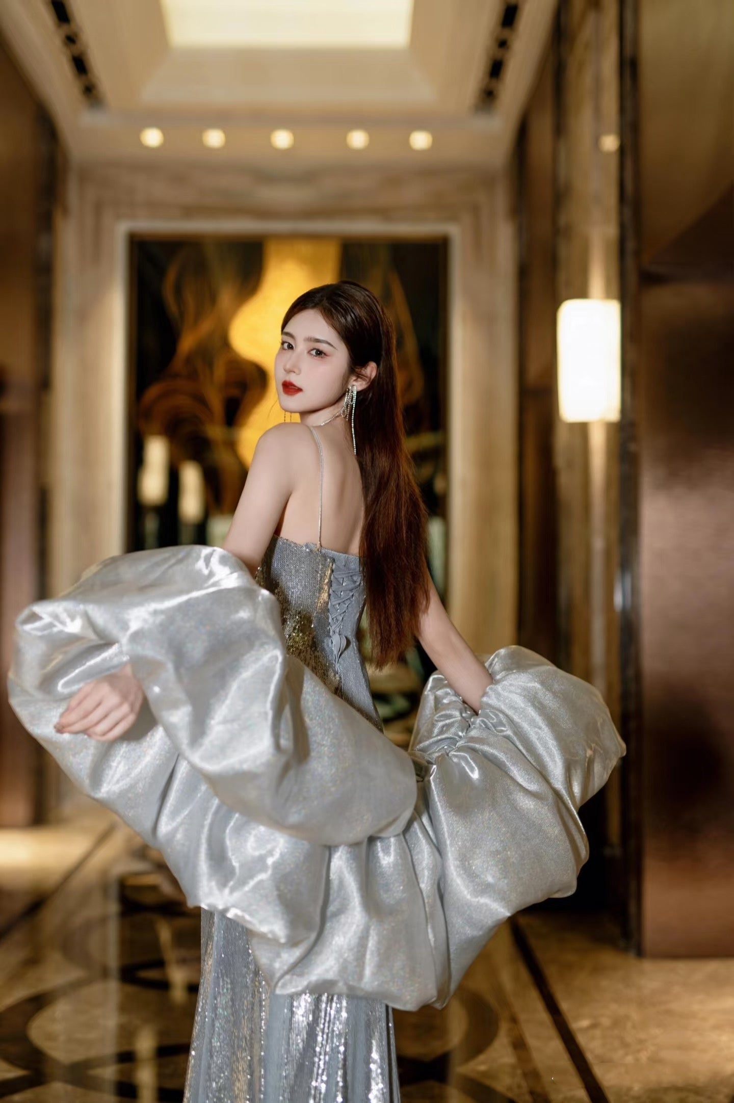 Mermaid Spaghetti Straps Silver Sequin Long Prom Dresses Evening Gowns S3825