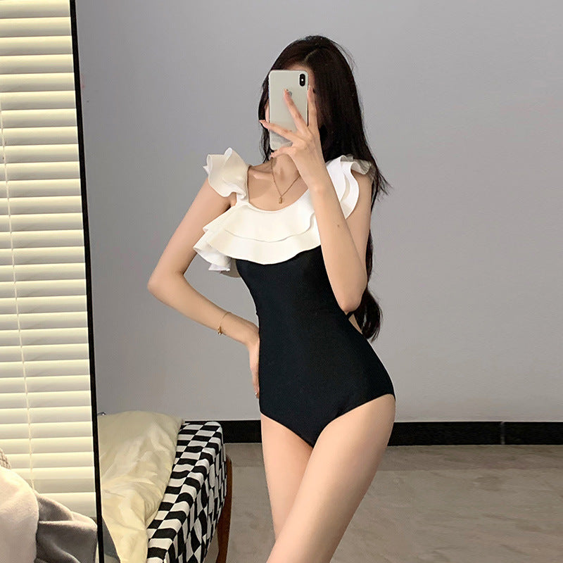 New Body Swimsuit Women Covered Thin Hot Spring Swimsuit 2025 Fashion Dress Black And White Pure Desire Swimsuit DJPT