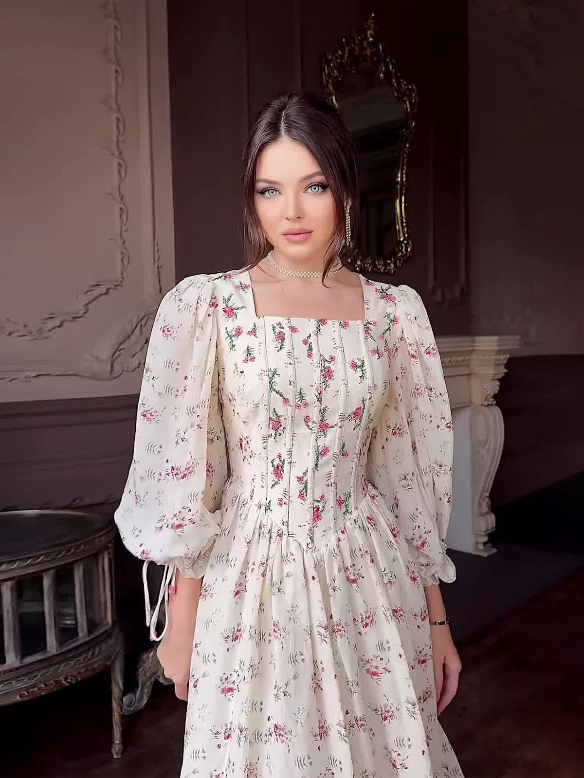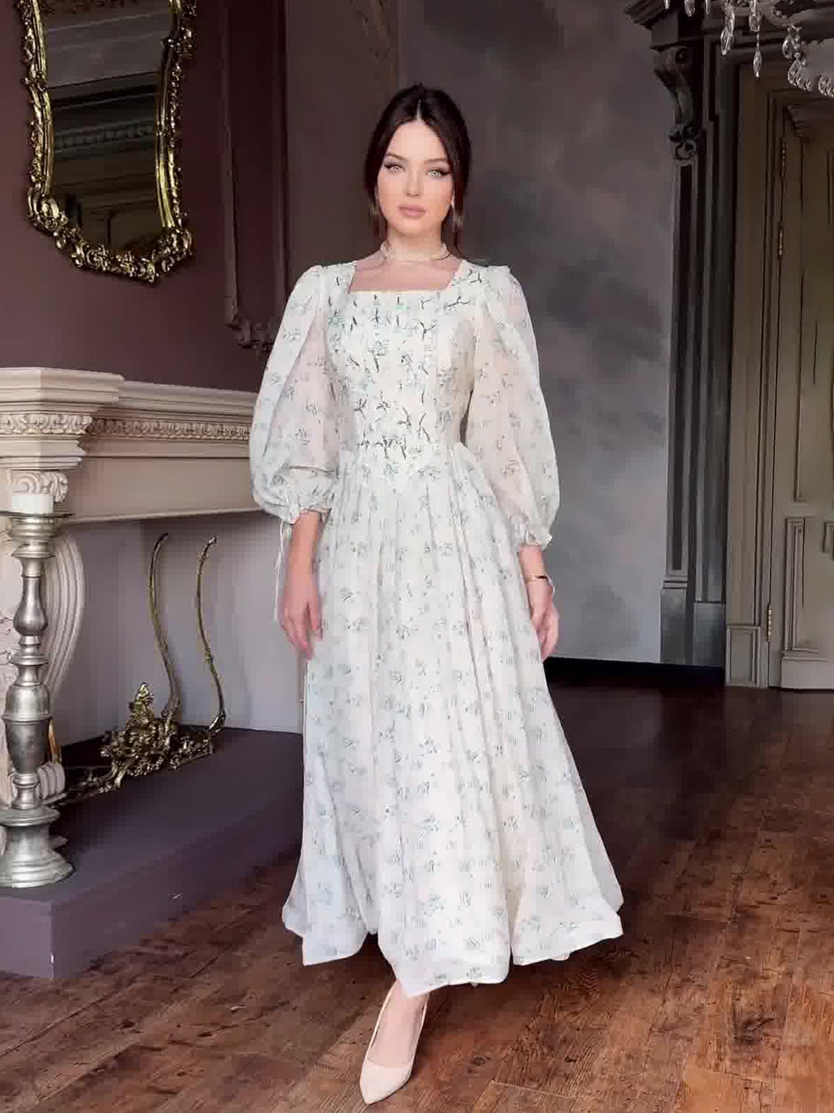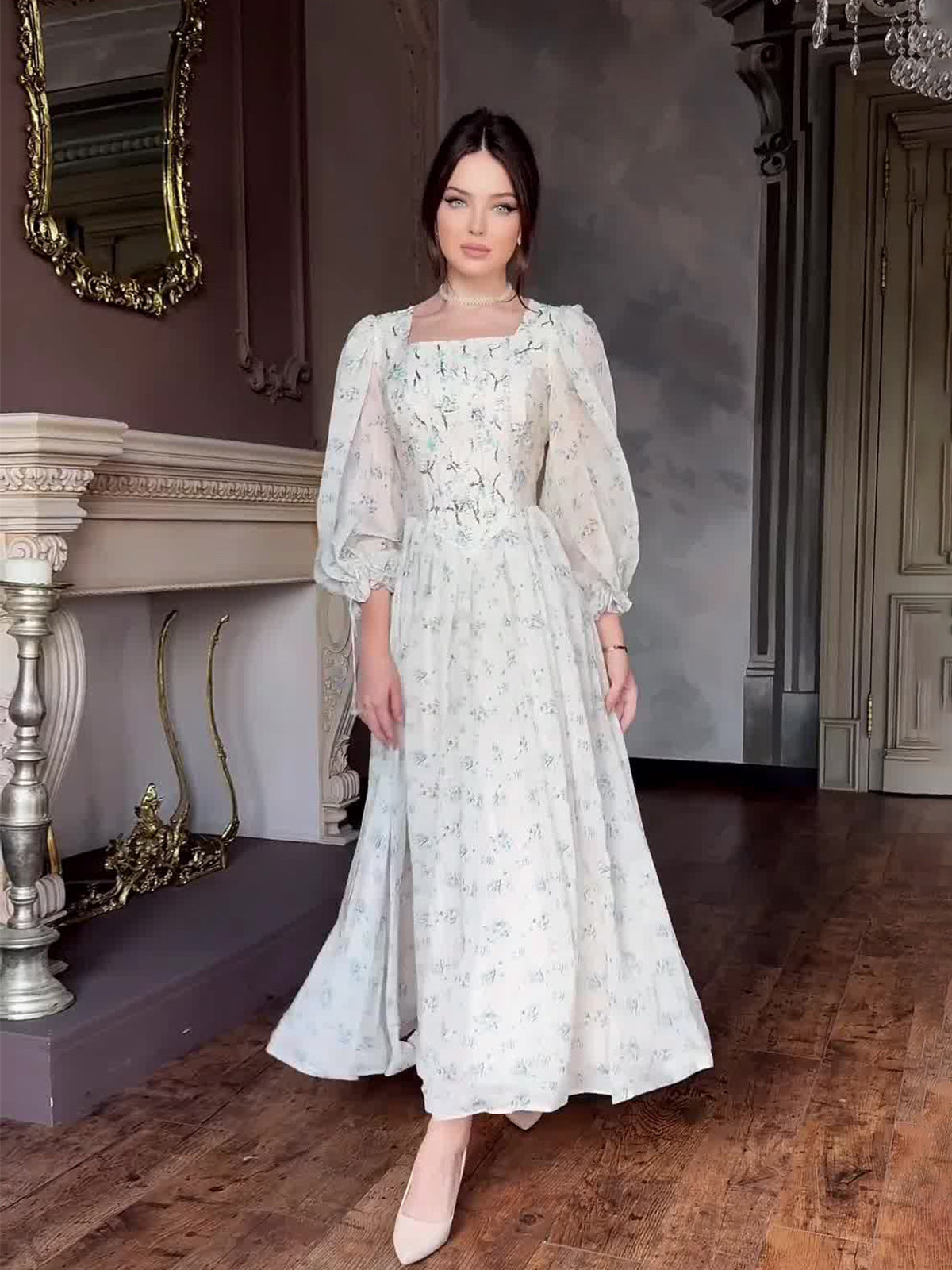 New Broken Flower Fairy Intellectual Wind Waist Tie With Long Dress