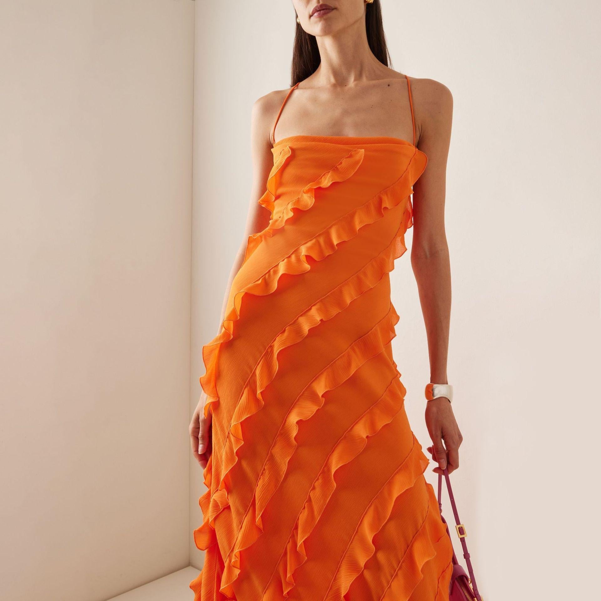 New Dress Temperament Wooden Ear Sling Skirt Open Word Shoulder Dress