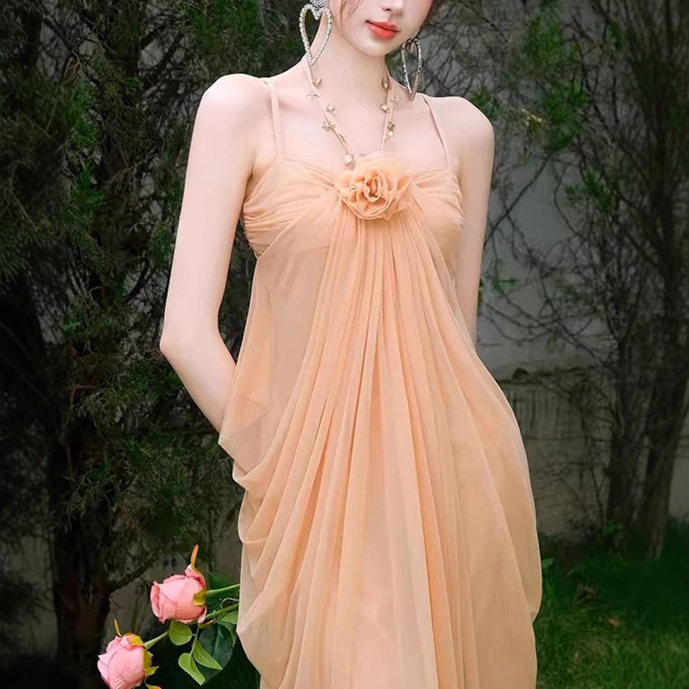 New Songchen Robe Sense Ocean Wind Color Mesh Sling Skirt