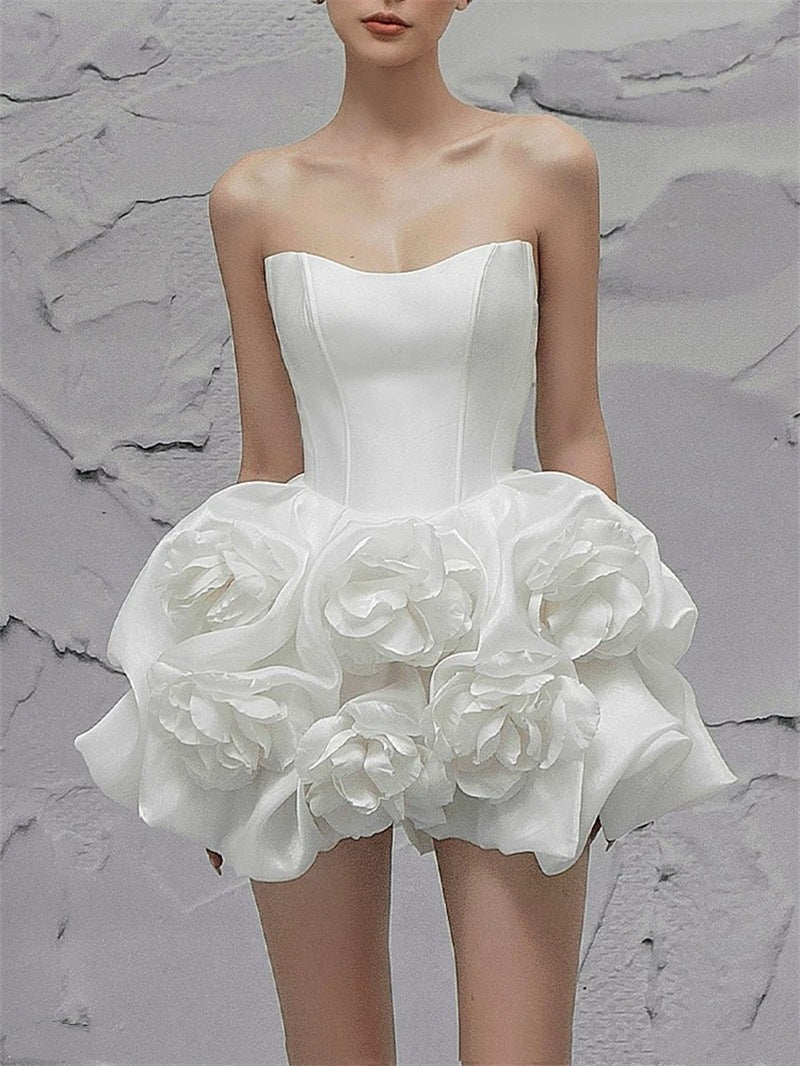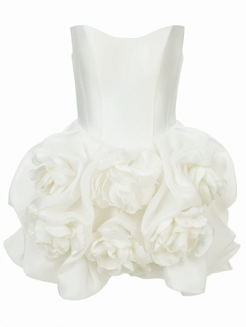 New Vietnamese Designer Trendy Fish Bone Wrapped Chest Three-Dimensional Flowers Pony Dress Small Dress